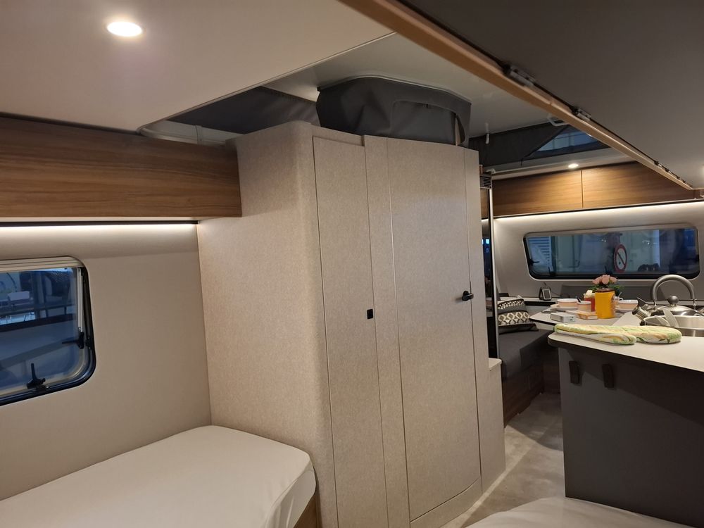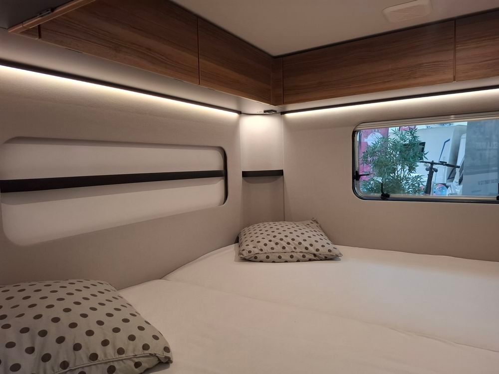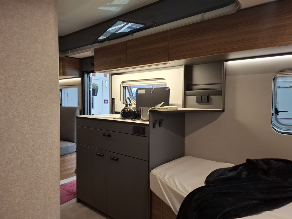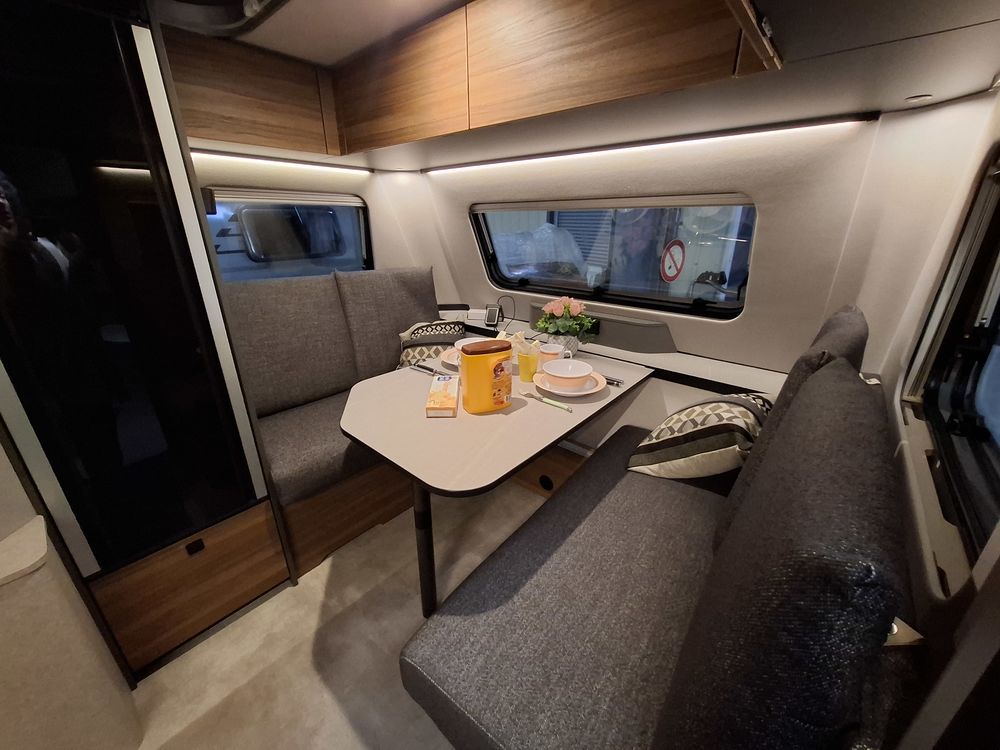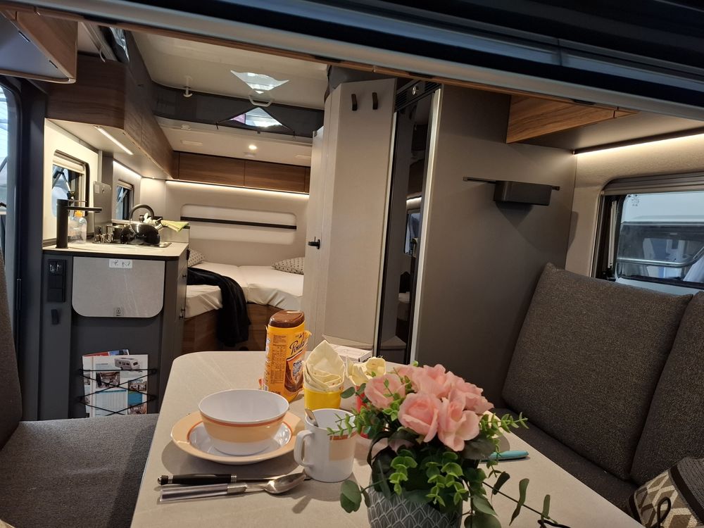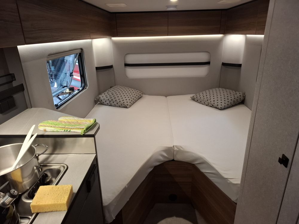 Nouveau design pour l'ERIBA FEELING, caravane aux dimensions compactes et au confort XXL : couchages de grandes dimensions et à l'accès facile, grand réfrigérateur à compression, équipements "douche", chauffage, eau chaude et porte-vélos sur timon. Pour la mise à disposition, nous offrons le store de toit posé. Laissez-vous emporter par la qualité de fabrication, le design chic et sobre et l'ensemble de ses fonctionnalités.