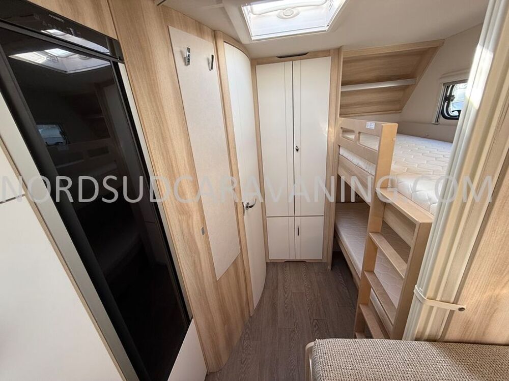 Embarquez toute votre tribu dans cette magnifique caravane d'occasion HOBBY 545 KMF De Luxe qui offre un maxi confort : maxi salon transformable en couchage 2 personnes, maxi salle de bain avec douche séparée, cuisine équipée d'un maxi réfrigérateur congélateur, grand plan de travail, réchaud 3 feux et évier inox, maxi capacité de rangement avec une grande penderie, maxi chambre d'enfant avec lits superposés, sans oublier ses nombreux rangements astucieux.