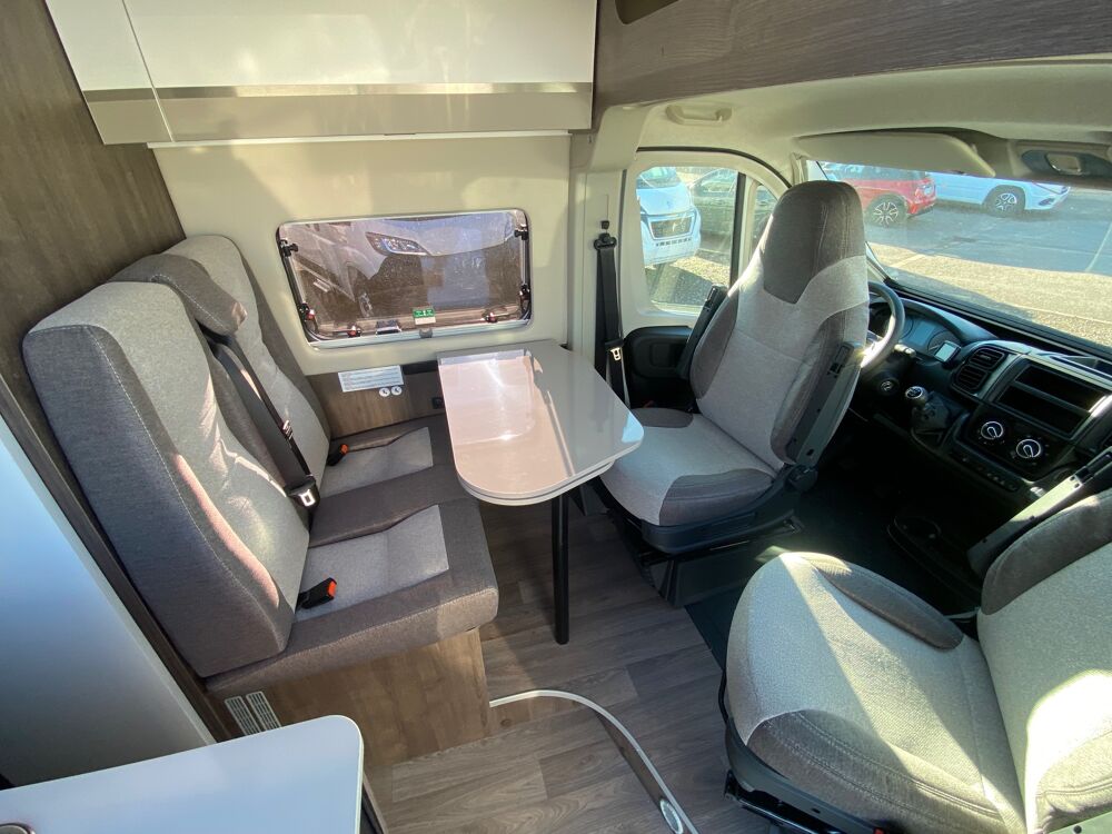 - Système Isofix sur banquette dînette COUCHAGES :Lits jumeaux arrières : (80 x 192) + (82 x 186)Couchage dînette : en option PRIX DE BASE DU MODELE : 56 490€ PRIX TTC DU MODELE EXPOSE : 56 490€ Véhicule garantie 2ans porteur / 2ans cellule / 5ans étanchéité. Possibilité de financement sur 144 mois avec extension de garantie. Distributeur des marques :Rapido, Fleurette, Florium, Itinéo, Benimar, etc…