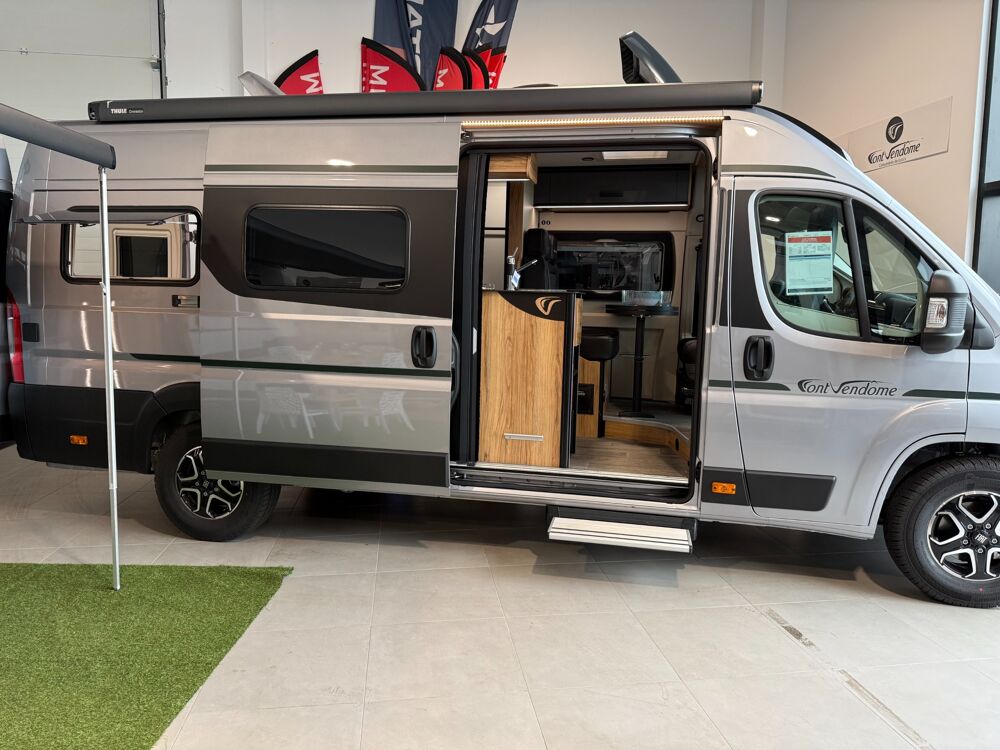 Le Font Vendôme Duo Van Série Élégance : un van grand luxe (6,36 m) pensé pour les couples - lits jumeaux premium, confort haut de gamme, autonomie renforcée (batterie lithium + panneaux solaires) et une boîte automatique pour des voyages en toute sérénité.