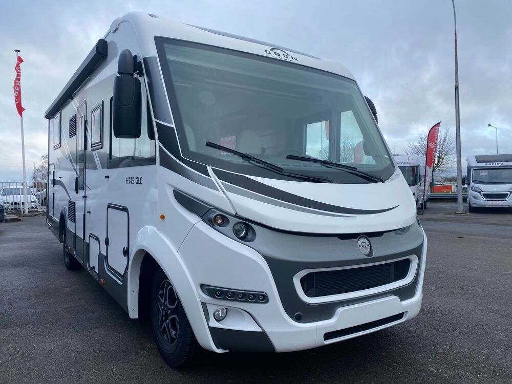 EDEN CAMP H 745 GLC FIAT DUCATO 180 CV 2200 CCBAC A DOUCHE MOUSSE AVEC 2 BANDES, MARCHEPIED INTEGRE/ISOLE, MATELAS EN MEMORY FOAM (LIT ARRIERE)/SOMMIER A LATTES, COUSSINS DECORATIFS, ECLAIRAGE INTERIEUR A LED, TRAPPE DE RANGEMENT SUPPLEMENTAIRE AU SOL, LIT ARRIERE FIXE/ REGLABLE EN HAUTEUR / COULISSANT, GRILLES EVACUATION DES EAUX DANS LE GARAGE ARRIERE, REGULATEUR DE VITESSE AVEC LIMITEUR DE VITESSE, KIT HOUSSE DE MATELAS ARRIERE, SOUTE CHAUFFEE, ECLAIRAGE EXTERIEUR A LED, PLAN DE CUISINE MONOBLOC EN PIERRE ACRYLIQUE, PORTE-EPICES / PORTE-COUVERTS, SIEGE PASSAGER AVEC CHAISE LONGUE, AIRBAGS CONDUCTEUR ET PASSAGER, ABS / ESC, FREIN DE STIATIONNEMENT ELECTRIQUE, ECLAIRAGE DAY RUNNING LIGHT, TABLE RABATTABLE, CLIMATISATION MANUELLE CABINE, FEUX ARRIERE FULL LED AVEC CLIGNOTANTS DYNAMIQUES, PORTES DES PLACARD HAUTS EN FINITION BRILLANT