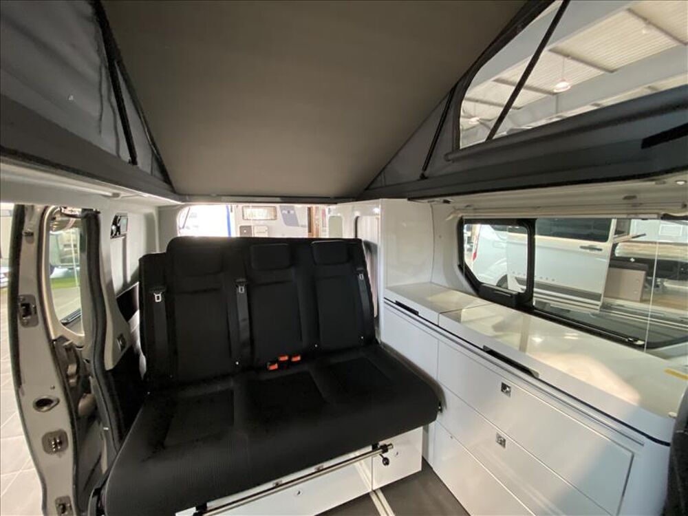 Connecteur pour douche externe, Réservoir eau 20L, 2 brûleur gaz, Branchement d'entrée 23.v, 2 Brûleurs gaz, Boite à gaz2.7kg, Climatisation cabine, Rétroviseurs chauffés et rabatables électriquement, Réfrigérateur compresseur 36L, Toit relevable
