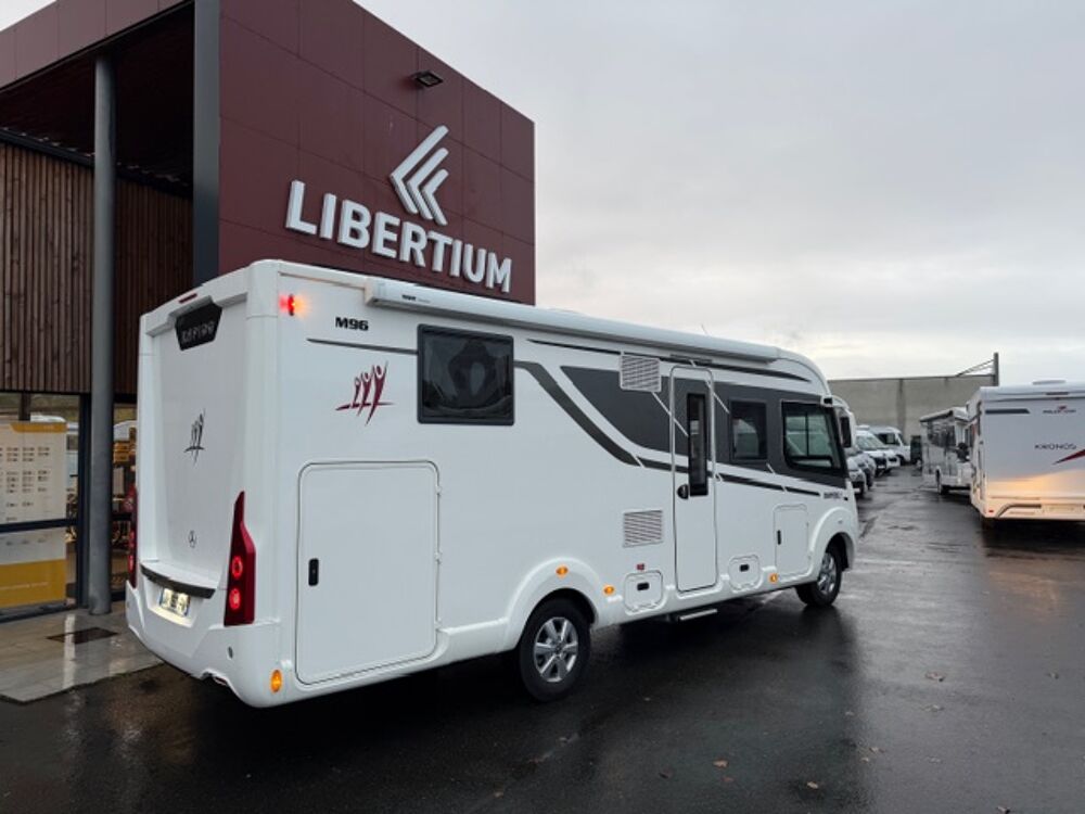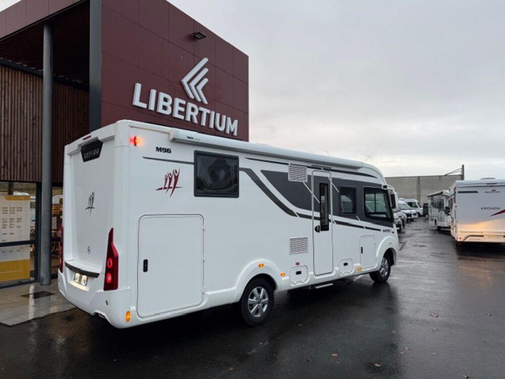 RAPIDO M96 MERCEDES 170 CV BVA 9G TRONICVolant multifonction, Detecteur de pluie, Alerte pression Pneumatique, Chassis alko, Boite automatique 9 G Tronic, Moustiquaire de porte cellule, Convertisseur 2 000W, Frein à main électrique, Hotte aspirante, Marche pied conducteur et cellule électrique, Pack M, Antenne sat auto, Isolant extérieur sur mesure Clairval, 2 batteries AGM, Soute réglable en hauteur, 2 télévisions, Station multimédia /caméra de recul, Occultant pare brise, Porte vélo de soute, Jantes alliage, Kit lino, Grand frigo congélateur, Rétroviseur double optique, Batterie Lithium 160 AMP, Store extérieur