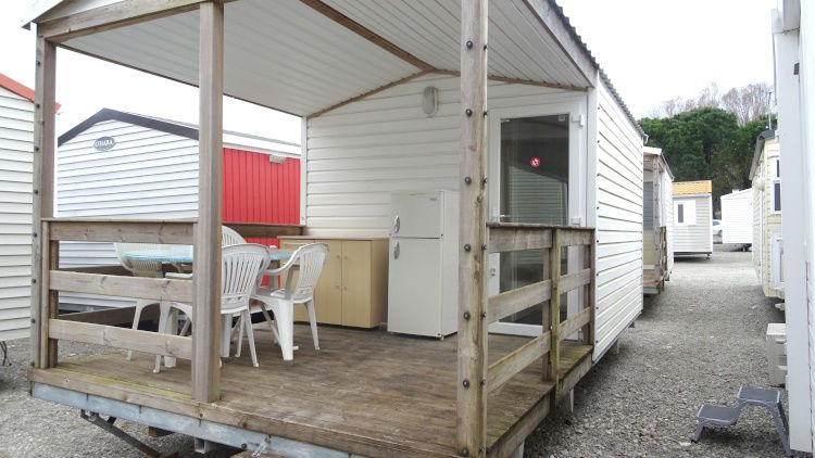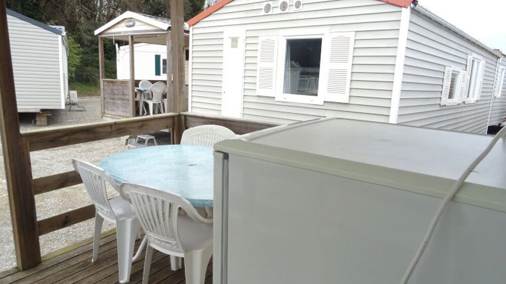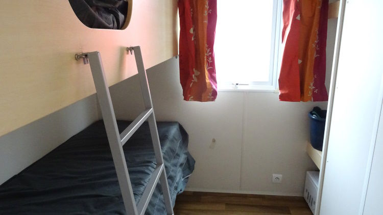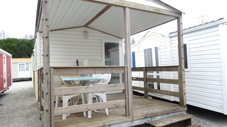 GRAND DESTOCKAGE SUR TOUS NOS MOBIL HOME! IDEAL CHAMBRES D'APPOINT, POUR BUREAU OU ACCUEIL; Mobil home de faible encombrement, avec une terrasse pignon. Double pente et double vitrage, bardage PVC blanc. La terrasse donne accès à un couloir qui dessert 2 chambres: une chambre avec 2 lits superposés, un chambre avec un grand lit. Pas d'équipement cuisine, salle d'eau et WC. Peut être utilisé comme chambre d'appoint; Facilement transformable en 2 bureaux. La terrasse peut recevoir table et chaises. Mobil home en 3 m de large, pouvant être placé facilement;