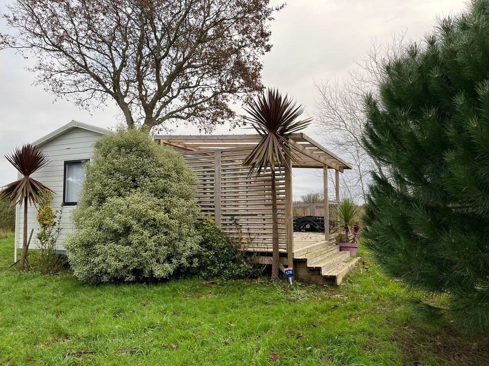 Situé sur l'une des parcelles du camping, le mobil-home se compose de :
