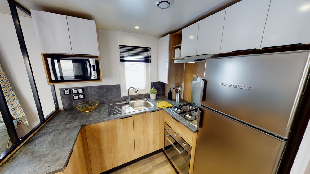 Caractéristiques du mobil-home : - Marque : RAPIDHOME - Modèle : BORA BORA - Année : 2021 - Surface : 40 M² - Chambres : 3 chambres - Capacité d'accueil : 6 à 8 personnes - Équipements : cuisine entièrement équipée, salle de bain avec douche, salon spacieux ...