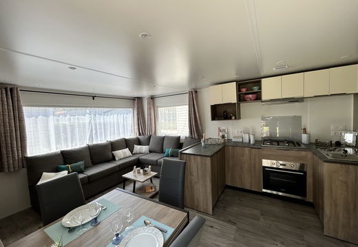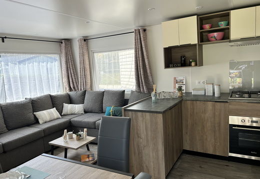 Le Solea, c'est comme une petite maison. tout y est ! avec un véritable salon panoramique et son superbe sofa ou vous prélasserez pendant que les enfants seront à la piscine.