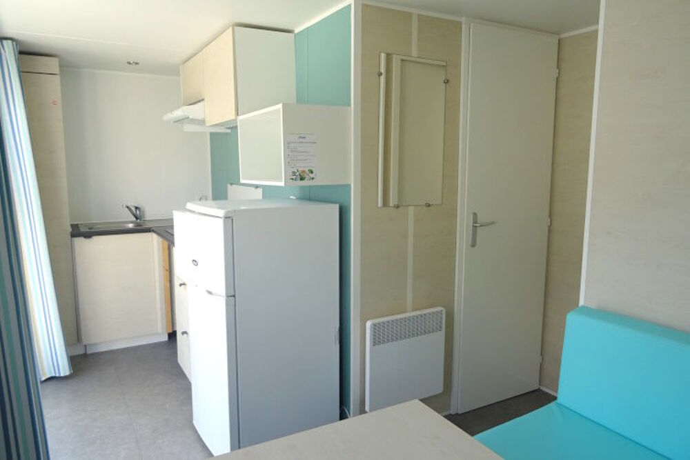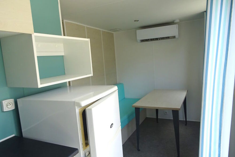 A SAISIR EN DESTOCKAGE! Petit mobil home 1 chambre IRM modèle CAHITA, faible encombrement. Bardage couleur bois en façade, en double pente et double vitrage. Idéal pour loger un étudiant, un sénior, un gardien. Une entrée qui donne sur la pièce à vivre; Un coin repas avec banquette; Une cuisine équipée avec réfrigérateur-congélateur, hotte. La chambre dispose de placard, tablette et penderie; Le plus: store-moustiquaire et convecteur. Salle d'eau avec douche, WC. Mobil home très lumineux, ambiance chaleureuse. Equipé clim;