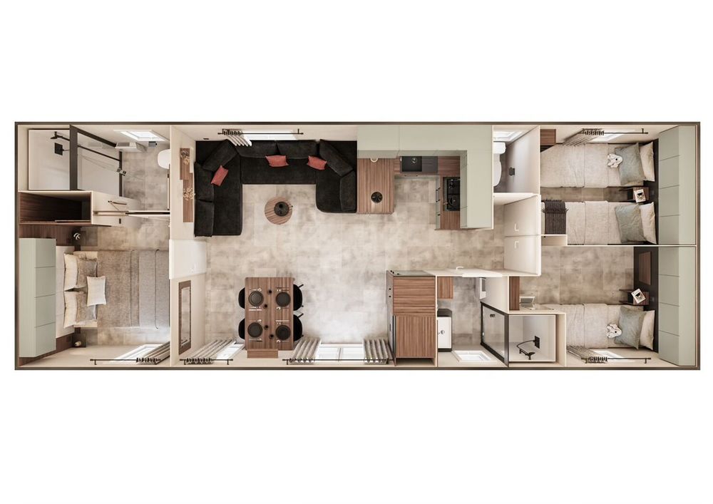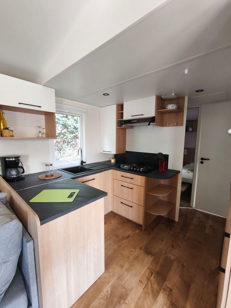 Mobil-home neuf modèle Trigano Amira 2025. 3 chambres et 2 salles d'eau dont une suite parentale. Beaucoup de rangements et belle cuisine en U avec four encastré en hauteur. 40 m²