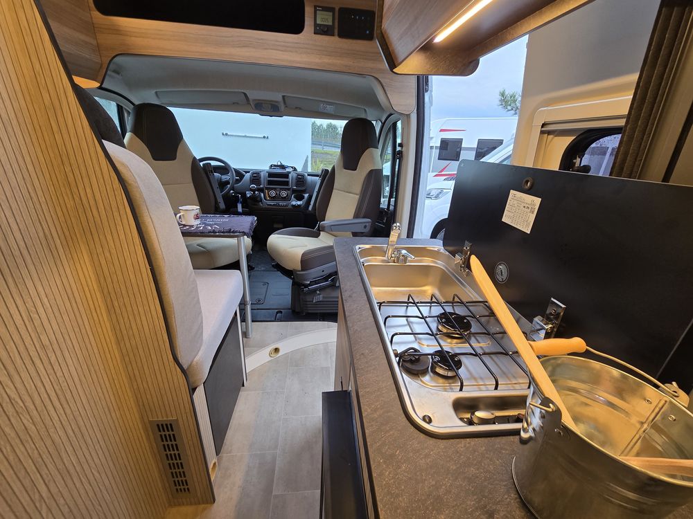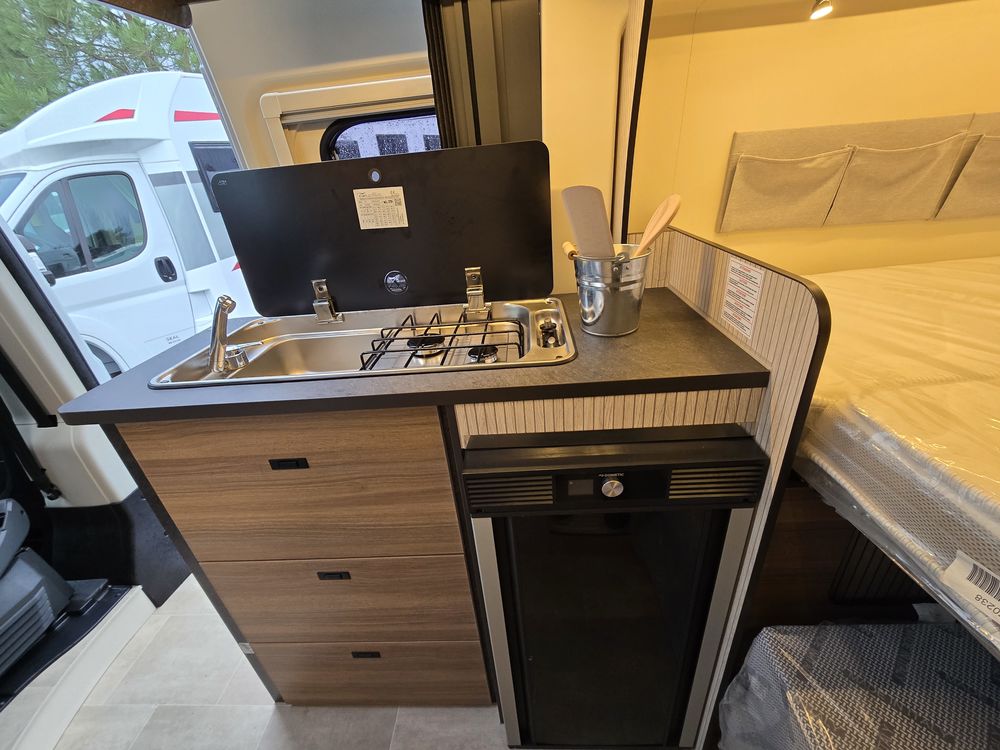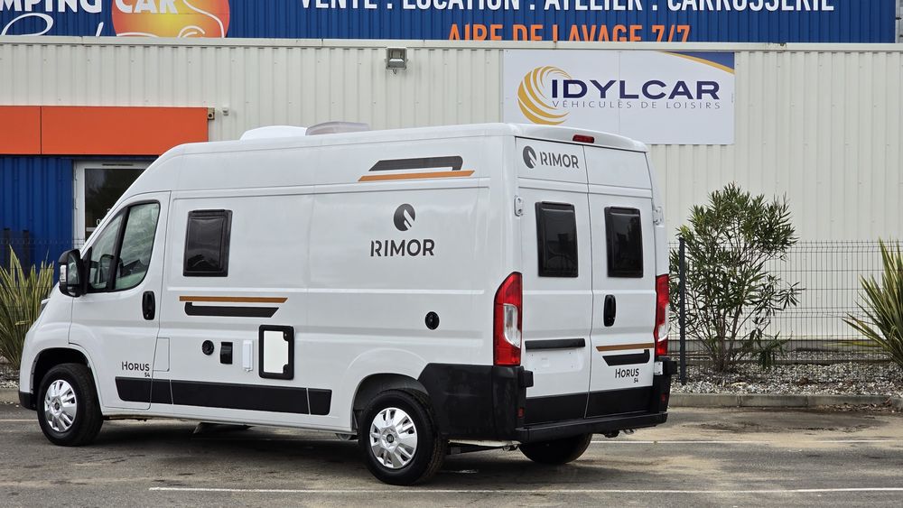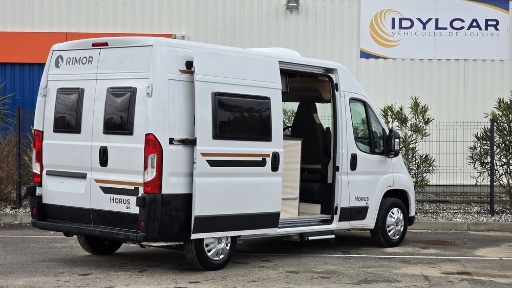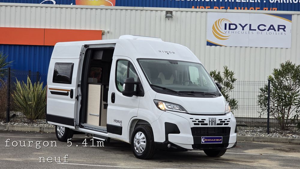 NOUVEAU 2025Le compact fourgon aménagé de 5.41 RIMOR HORUS54 greffé au FIAT DUCATO 140 ch se révèle fonctionnel. Le lit transversal arrière offrent tout ce l'on peut attendre d'un fourgon d'accès: simple, simplicité, fonctionnel et prix serré.