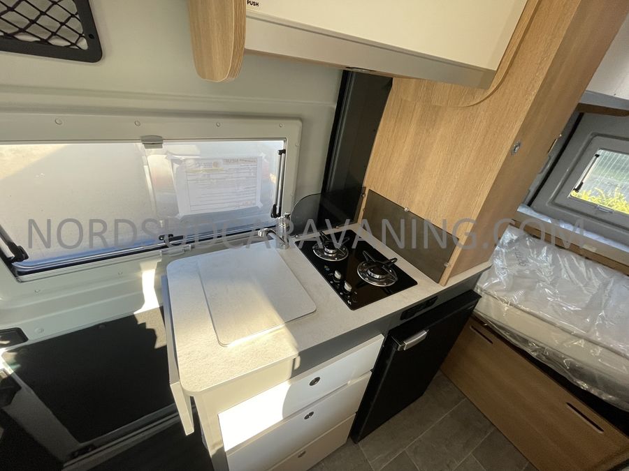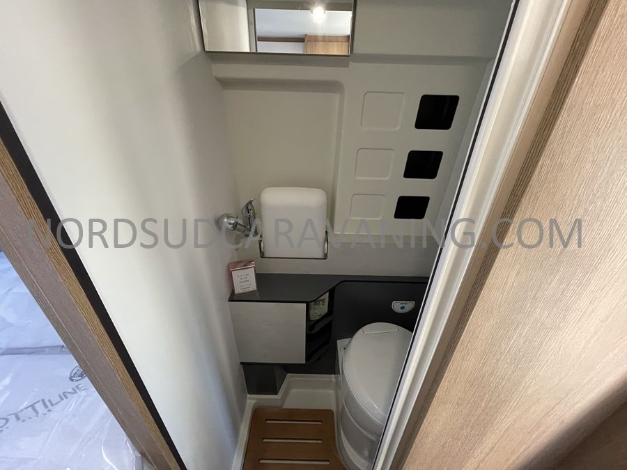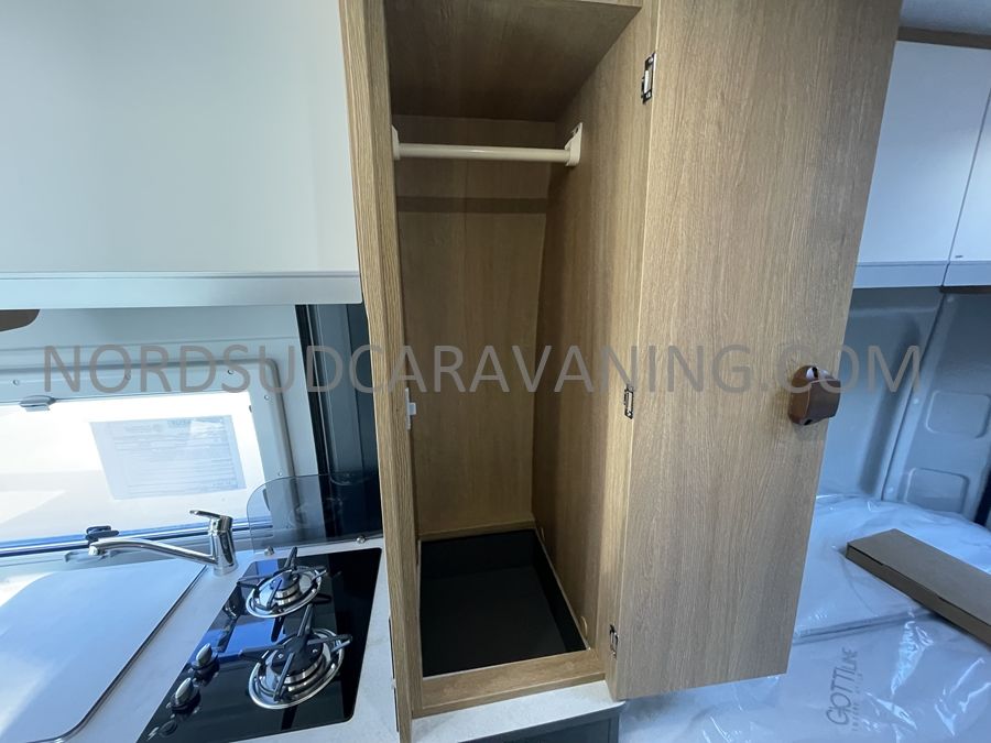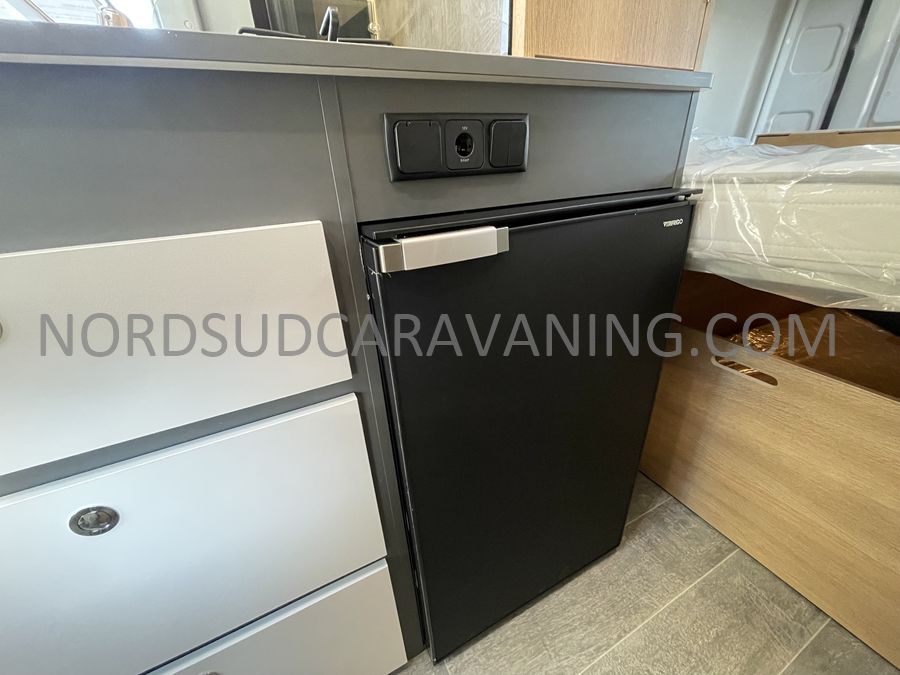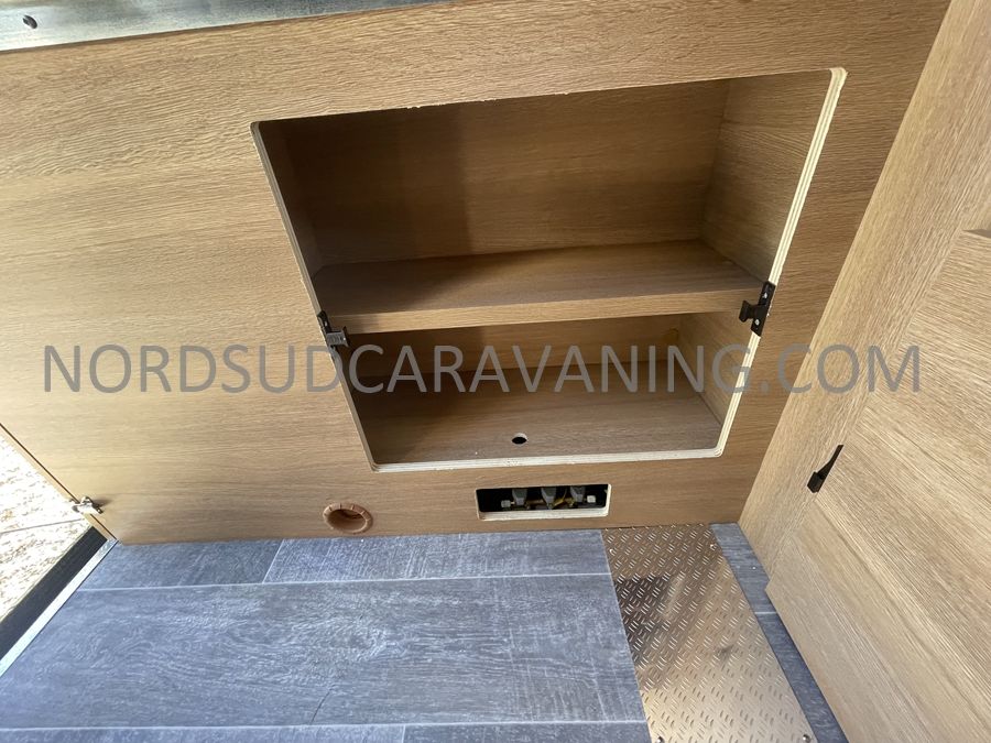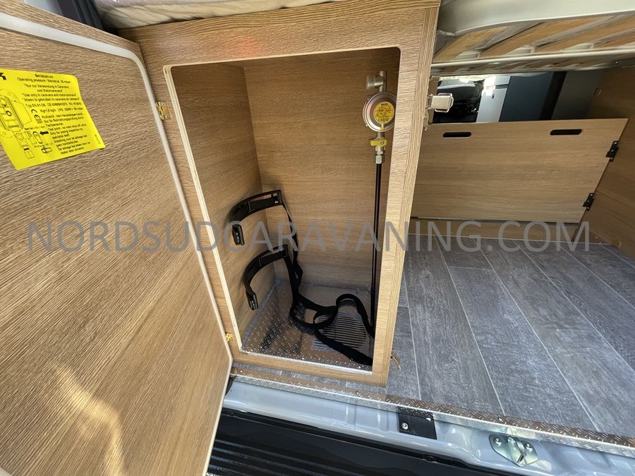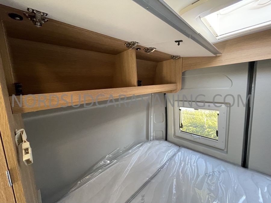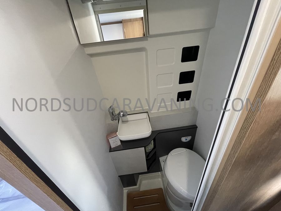 Sa dinette agréable et lumineuse se transforme en couchage d'appoint. Sa cuisine latérale pratique et fonctionnelle est équipée d'un réchaud 2 feux, évier et plan de travail rabattable. En face, une salle d'eau compacte tout-en-un qui ne manque de rien (Lavabo, miroir, WC, Douche). A l'arrière, c'est un couchage transversal confortable et agréable sur soute qui est proposé, vous permettant de ranger vos vélos, de retour de balades. Sans oublier ses nombreux rangements astucieux !