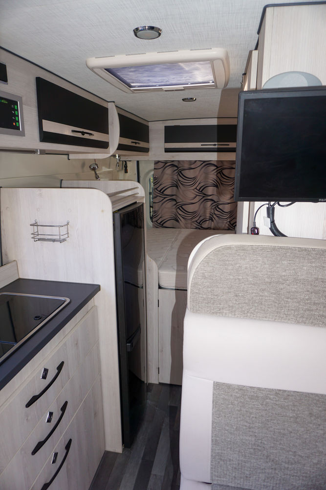 Fourgon aménagé FONT VENDOME Leader Van, 4 places carte grise, 3 couchages, première mise en circulation le 10/10/2018, garantie : 12 mois.