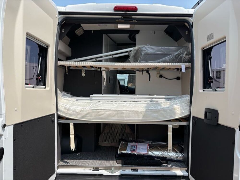 Cuisine en long, Douche indépendante, Lit dînette avant, lit superposés, Lit toit relevable, Maxi salon, Salon avant sièges pivotants, WC Cassette.