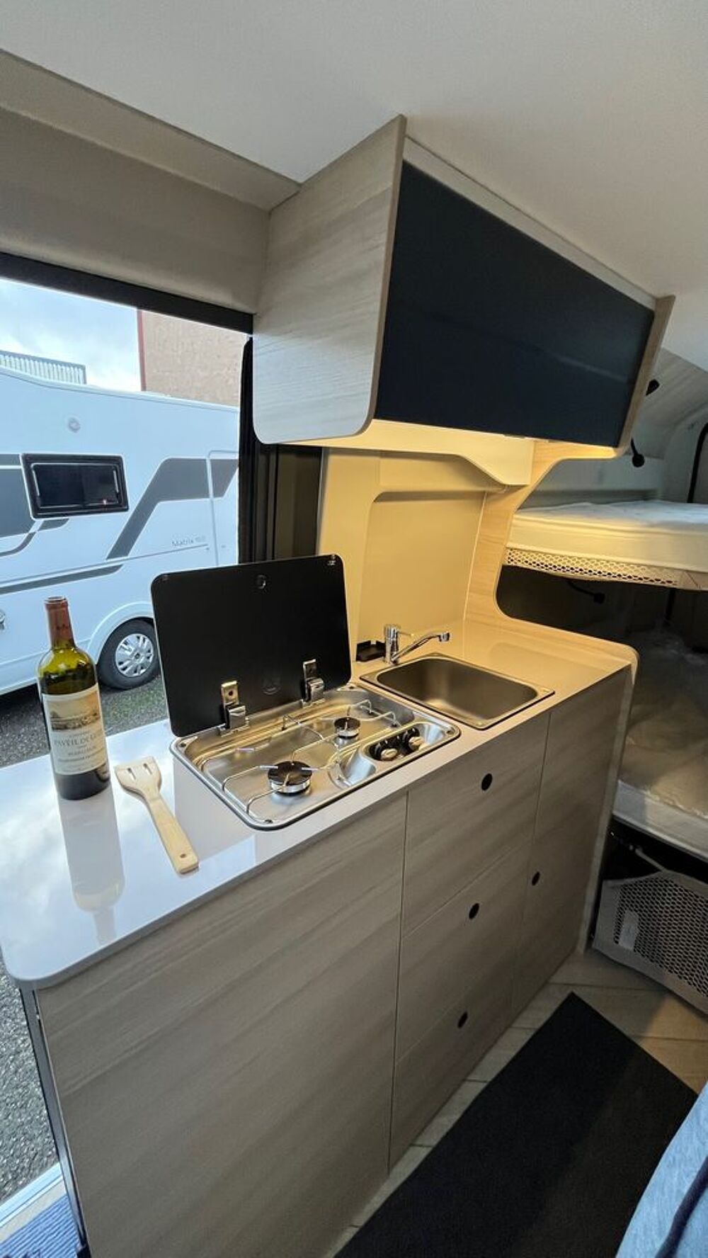 – Pack Accessoires ( Store, panneau solaire 140W, moustiquaire de porte, stores intérieur cabine )