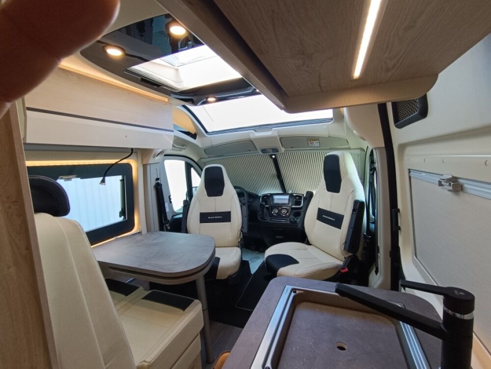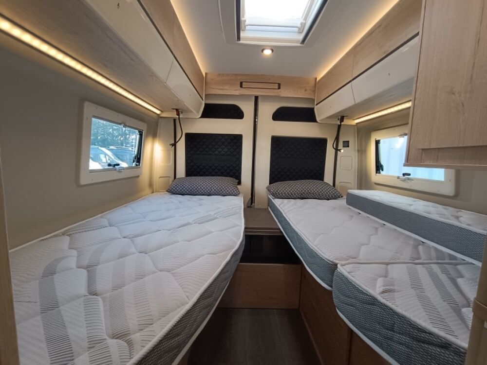 Monté sur le porteur Fiat Ducato 2.2 L – 140 ch, équipé d'une boîte automatique, il offre une conduite souple, fluide et particulièrement agréable, idéale pour les longs trajets comme pour les escapades du quotidien.