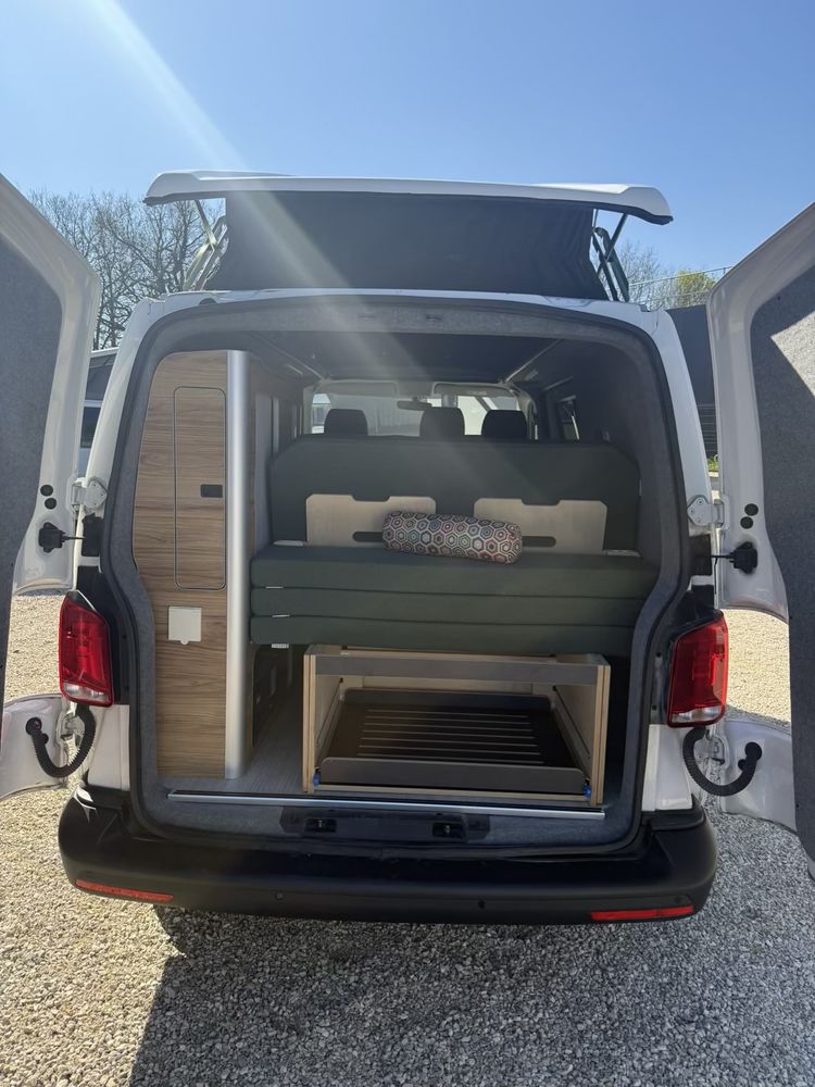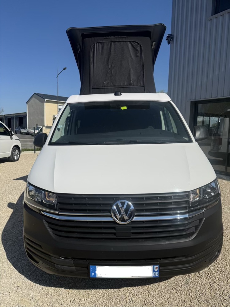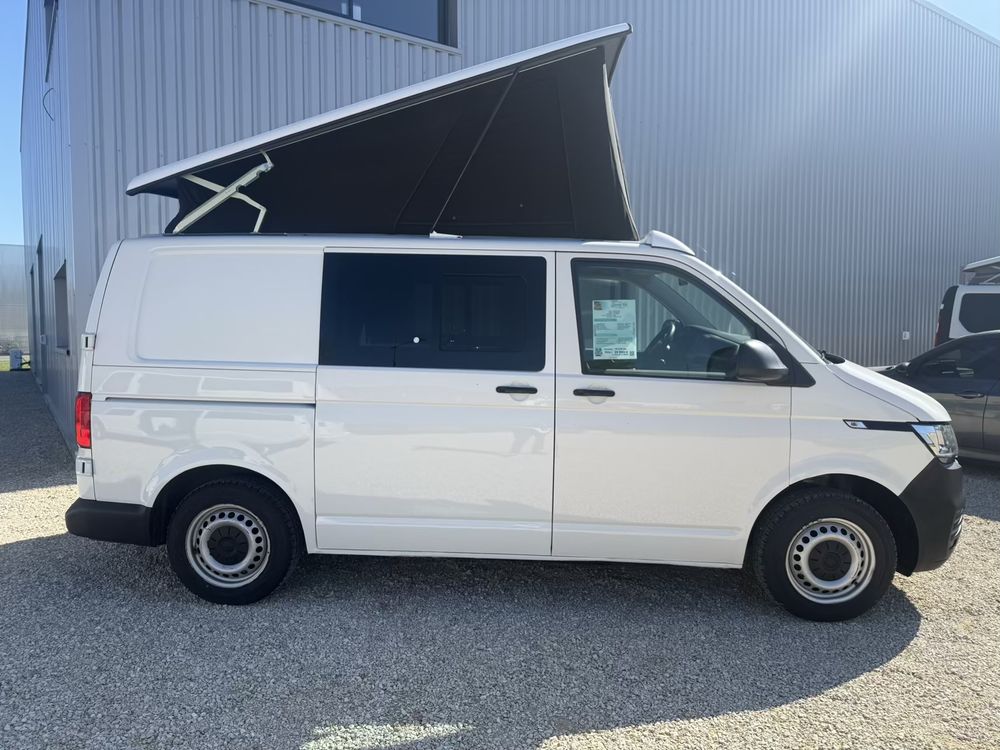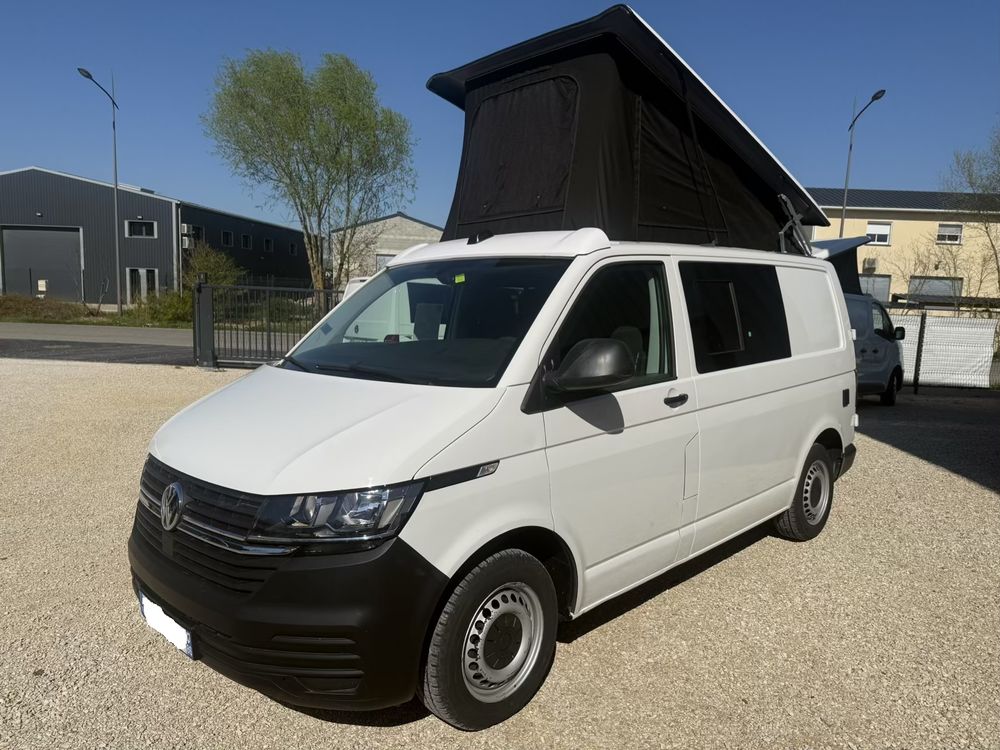 Volkswagen T6 aménagé, Banquette arrière face route(non homologué), toit relevable, année 2020 - 4 couchages - 2.0L 110cvCaractéristiques du véhicule :