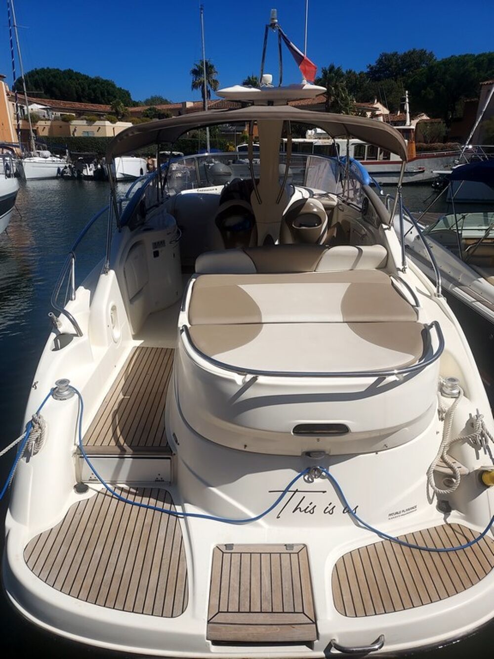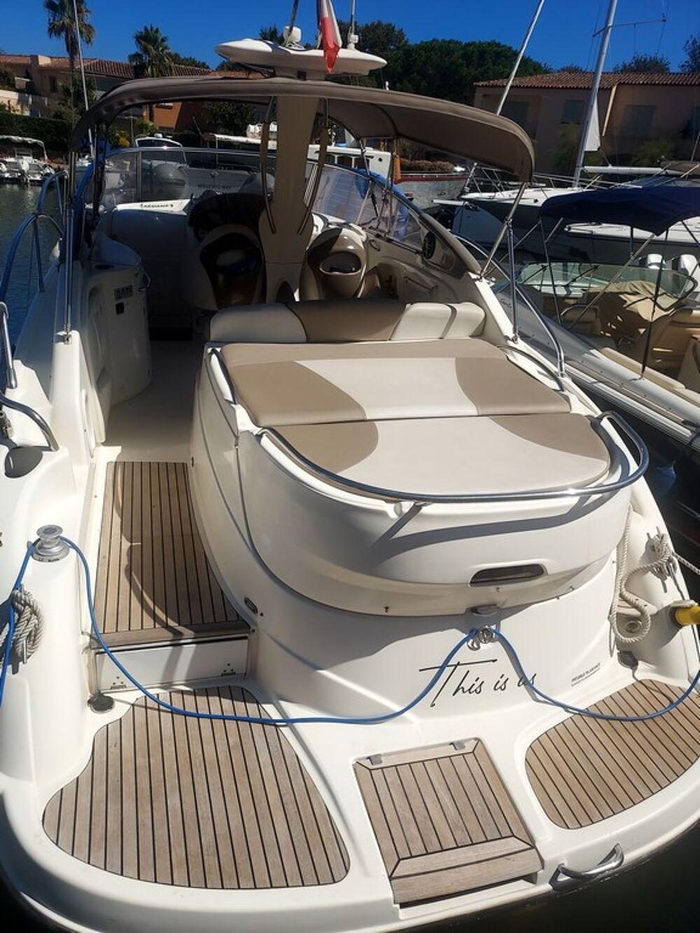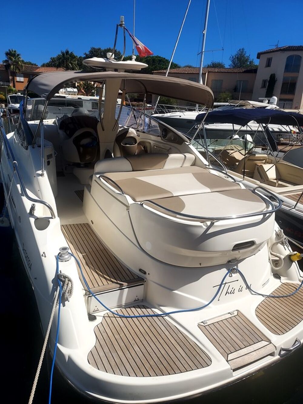 excellent bateau grâce à sa mécanique avec commandes électrique munie d'une passerelle Hydrau/ Climatisation Réversible . Full equipé . . l'intérieur est très propre l'extérieur egalement , le bateau est bien tenu ( Proprietaire meticuleux et soigneux .