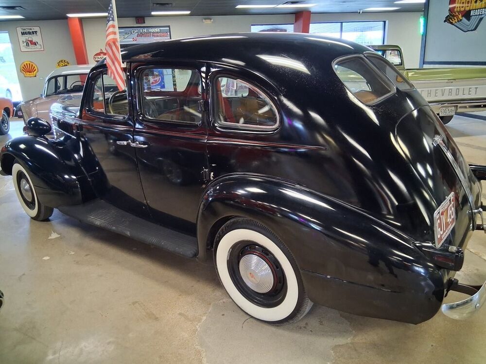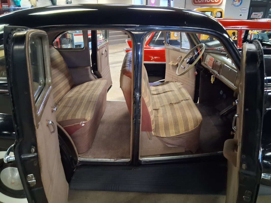 - Marque : Pontiac- Modèle : Sedan 6-27- Année : 1938- Couleur extérieure : Noir- Couleur intérieure : Marron- Type de transmission : 3 vitesses manuelle ("3 on the tree")- Moteur : 223 CUBIC INCH (6 cylindres en ligne)- Puissance : 85 chevaux- Roues : 16 pouces- Suspension : feuilles- Freins : tambours tout autour- Kilométrage : 0- Propulsion : RWD (Propulsion arrière).
