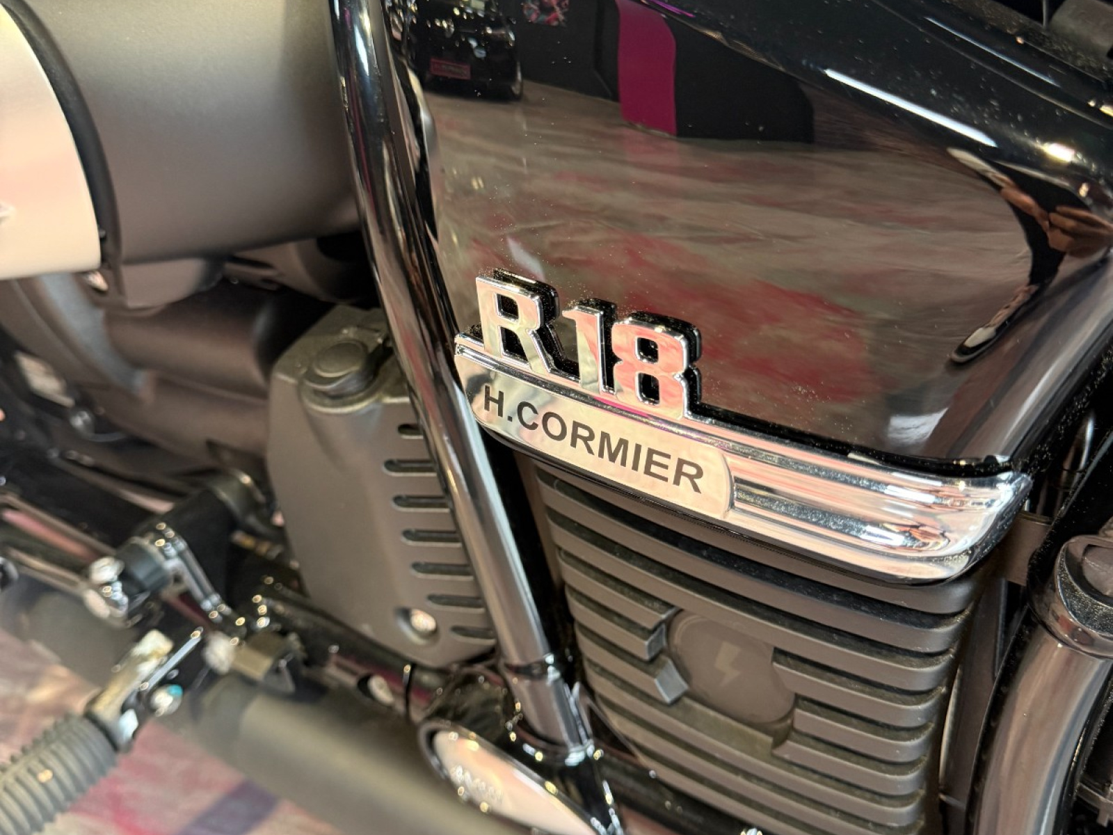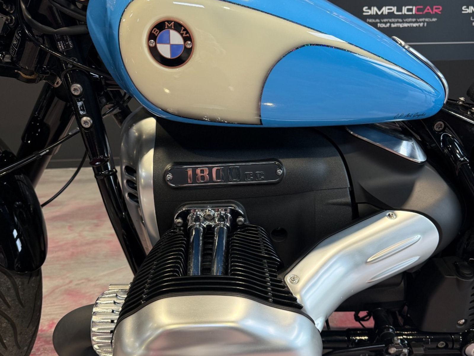 // BMW R18 – Préparation Bobber – 1ère main – État exceptionnel superbe BMW R18 en première main avec une préparation soignée de style Bobber alliant performance design unique et qualité de finition Préparation & Équipements : Kit Bobber FCR : selle solo garde-boue arrière support spécifique Silencieux courts FCR pour un son plus expressif Carter aluminium brossé + plusieurs pièces brossées pour un look raffiné Support de plaque LED + éclairage intégré Micro clignotants LED arrière Peinture personnalisée signée CP Art Graphic (pièce unique) 3 guidons disponibles (FCR et BMW) selon vos préférences de conduite Clignotants de bout de guidon Rizoma Kit durites et faisceau rallongés Vendue avec toutes les pièces d'origine Entretien & Garantie : Révision des 1000 km effectuée AGENCE SIMPLICICAR TOULON EST74 Rue Ampère 83210 La Farlède Horaires d'ouverture :Lundi