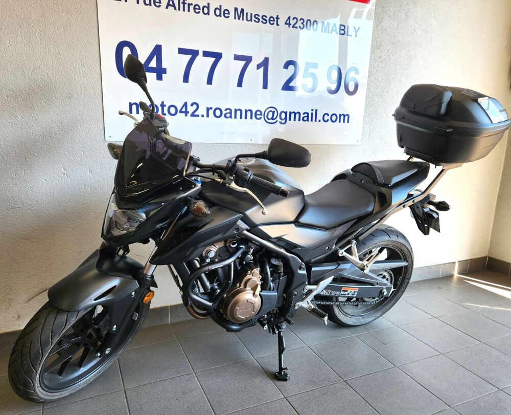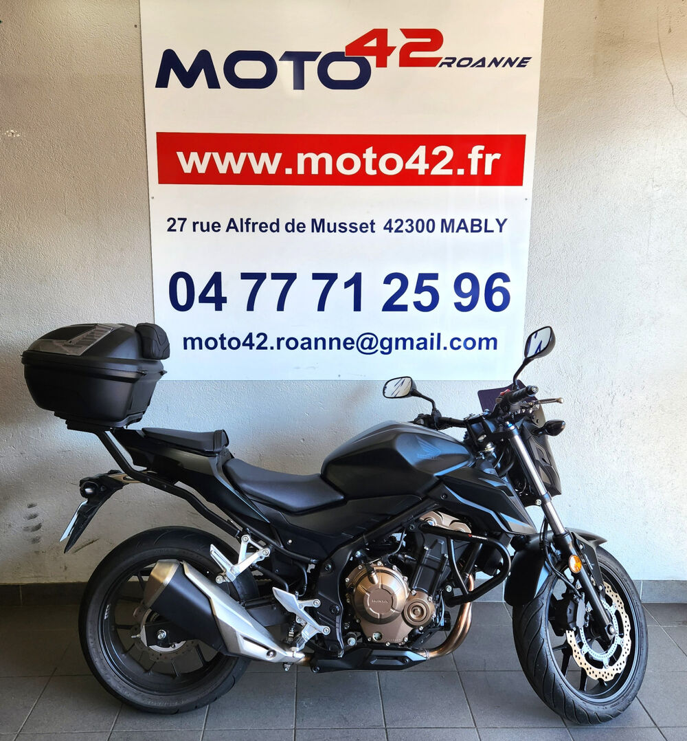 HONDA CB 500 FA Disponible en vente chez MOTO 42 cette belle HONDA CB500 F modèle 2018. La moto est en très bon état générale, juste un petit impact sur le réservoir. Elle est équipée de crashbar, d'un top case et d'un saut de vent. Elle est vendue avec entretien et listing de contrôle spécifique VO fait dans nos ateliers, Contrôle technique fait, pas de frais à prévoir. Pour plus d'informations veuillez nous contacter directement svp, plus de véhicules neufs et occasions sur www.moto42.fr Crashbar,Saute vent,Top case,Assurance sur place,Démarches administratives sur place,Gravage possible,Livraison possible,Prix hors frais d'immatriculation,Reprise possible,Compatible Permis A2,Garantie 12 mois