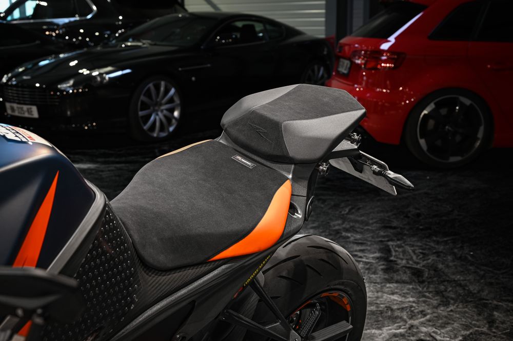 Face à une Tuono V4 Factory, Streetfighter V4 ou MT-10 SP, la Super Duke R reste fidèle à son ADN brutal et efficace. Mais dans cette livrée reconfigurée par un passionné méticuleux, elle franchit un nouveau cap : celui de l'exception.