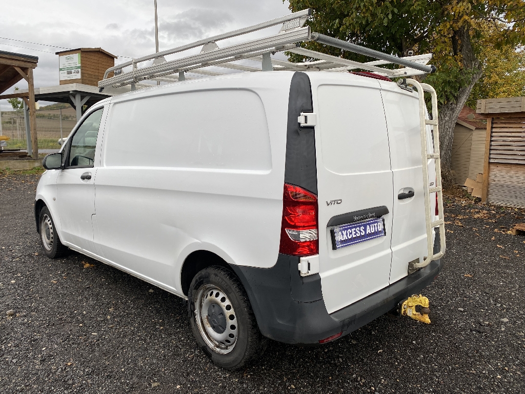 MERCEDES VITO FOURGON (114 CDI LONG PRO) Blanc.- 3 places , - Galerie , - Attelage , - Caméra de recul , - Navigation GPS , - kit mains libres téléphone bluetooth , - régulateur de vitesse, - Limiteur de vitesse , - Aide au demarrage en côte, - Airbags, - Allumage automatique des phares, - Boîte de vitesses mécaniques 6 rapports, - Climatisation , - Fonction Stop/Start ECO, - Habillage intérieur du compartiment de chargement, - Porte AR à 2 battants 180° sans fenetre, - Rétroviseur chauffant et à réglage électrique, - Roues de secours avec cric, - Tempomat, - Volant réglable en hauteur et en profondeur, , - Possibilité de reprises sur votre ancien Véhicule et Utilitaire , - Pour les demandes de reprises adressez-nous un mail : , - Tous nos véhicules sont vendus révisés et garantis., - Nous proposons une extension de garantie si nécessaire., - Etude de financement possible avec apport , - L'exactitude des informations ci-dessus ne sont pas confirmées ni garanties au cas où une erreur de saisie aurait pu se produire , - Nos Horaires du Lundi au vendredi 9h-12h 14h-19h Le samedi 10h-12h 14h-18h , - AXCESS AUTO c'est 15 ans d'expérience dans l'achat et vente., - L'arrivage permanent de véhicules toutes marques., - Nous vous proposons tous les prix de la petite citadine jusqu'au véhicule de luxe., -Toute notre équipe reste à votre disposition pour répondre à vos attentes. , -AXCESS AUTO 19 avenue d'aubiere 63800 Cournon d'Auvergne , -Tel ou , - Pour consulter le stock complet tapez AXCESS AUTO dans la barre de recherche.,, 6 vitesses, 3 places, puissance fiscal : 6, puissance din : 136, émission de CO2 : 174 g/km.