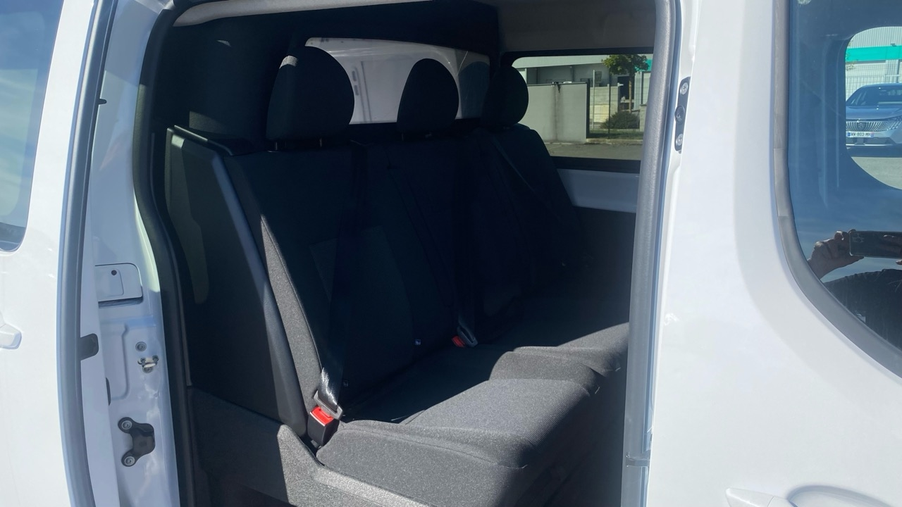 Pack Caméra (incl. Mirror screen Apple/Android),Pack Look extérieur,Siège passager individuel+accoudoir,Blanc Icy,roues en 17'',Rétroviseurs dégivrants,Rétroviseurs électriques,Siège conducteur réglable en hauteur,Tissu bi-ton noir/gris,Verrouillage centralisé à distance,Vitres avant électriques,1 Porte latérale coulissante,Aide au démarrage en côte,Aide au freinage d'urgence,Arrêt et redémarrage auto. du moteur,Assistance de maintien de trajectoire,Banquette arrière 3 places,Capteur de luminosité,Capteur de pluie,Clim manuelle,Cloison pleine,Commandes du système audio au volant,Double portes arrière de chargement,Ecran multifonction couleur,Ecran tactile,ESP,Feux de jour,Fonction MP3,Kit mains-libres Bluetooth,Régulateur de vitesse,Radio numérique DAB,Radio,Radar de stationnement AR,Prise USB,Prise 12V,Limiteur de vitesse