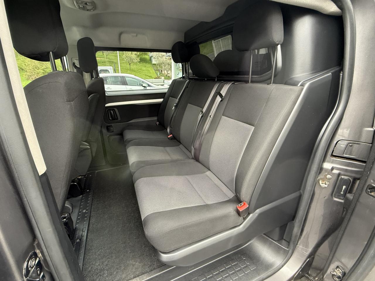 Rang 2 : banquette 3 places avec accoudoirs repliables. Coffre de rangement sous assise en partie centrale et latérale