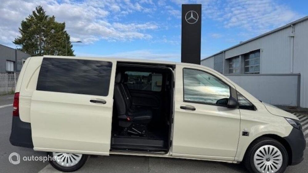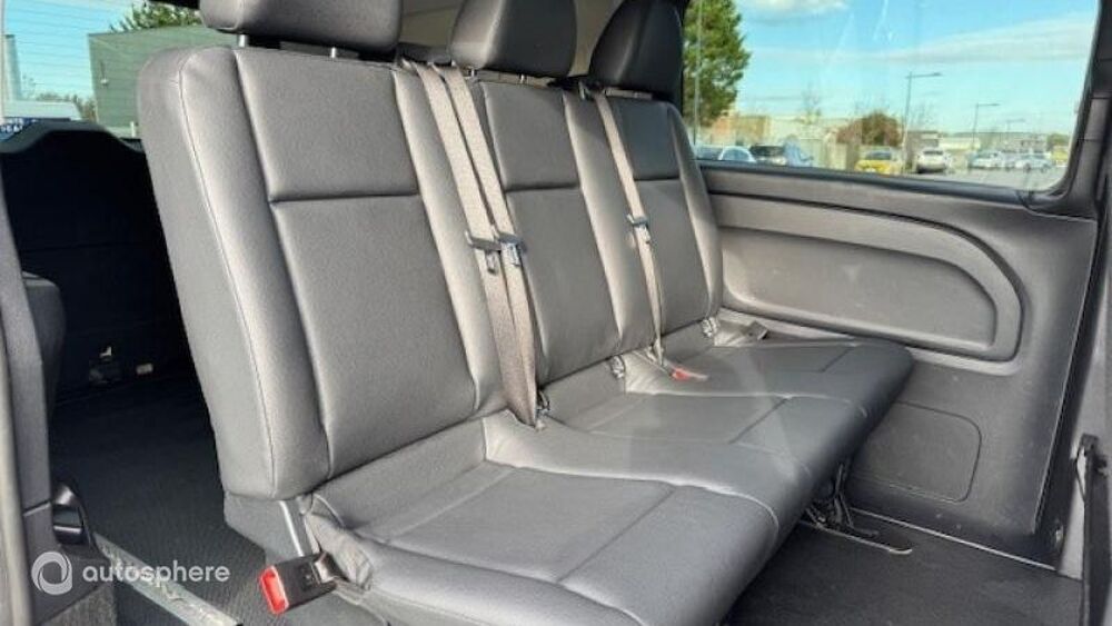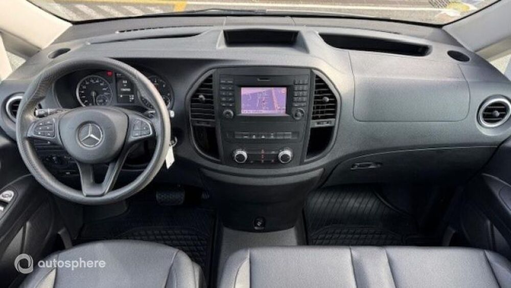 Equipements: 1 Porte latérale coulissante, 2 Haut parleurs, ABS, Aide au démarrage en côte, Aide au freinage d'urgence, Airbag conducteur, Airbag passager, Antidémarrage électronique, Antipatinage, Arrêt et redémarrage auto. du moteur, Bacs de portes avant, Banquette arrière 3 places fixe, Banquette arrière monobloc, Boite à gants fermée, Capteur de luminosité, Ceintures avant ajustables en hauteur, Clim automatique, Cloison vitrée, Compte tours, Contrôle de freinage en courbe, Contrôle élect. de la pression des pneus, Contrôle optimal du roulis, Double portes arrière de chargement, Ecran multifonction couleur, ESP, Filtre à particules, Filtre à Pollen, Fonction MP3, Habillage latéral espace de chgt, Kit mains-libres Bluetooth, Lampes de lecture à l'arrière, Lampes de lecture à l'avant, Lecteur carte SD, Limiteur de vitesse, Pare-brise thermique, Paroi séparation, Phares halogènes, Plancher Bois, Porte-gobelets avant, Porte latérale arrière droite, Prise 12V, Prise iPod, Prise Jack, Prise USB, Radio, Régulateur de vitesse, Répartiteur électronique de freinage, Rétroviseur intérieur jour/nuit, Rétroviseurs électriques, Rétroviseurs électriques dégivrants, Siège conducteur réglable en hauteur, Système de détection de somnolence, Témoin de bouclage des ceintures AV, Température extérieure, Verrouillage centralisé à distance, Verrouillage centralisé des portes, Vitrage calorifuge, Vitres latérales fixes sur rang 2, Vitres teintées, Volant réglable en profondeur et hauteur, Banquette pass. deux places, BVA 7G-TRONIC+palettes, Climatiseur semi-auto TEMPMATIC, Détecteur de pluie, Hayon AR, Ivoire, Navigation GPS Becker MAP PILOT, Porte coulissante gauche