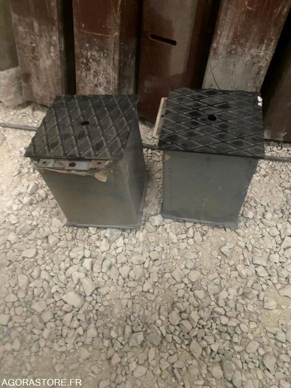 Caractéristiques techniques: 9 BORNES BOIS EXOTIQUES NEUVES Dont 2 avec plot à sceller pour les rendre amovibles La teinte semble terne, c'est de la poussière car elles sont stockés dans un abris depuis plus de 10 ans