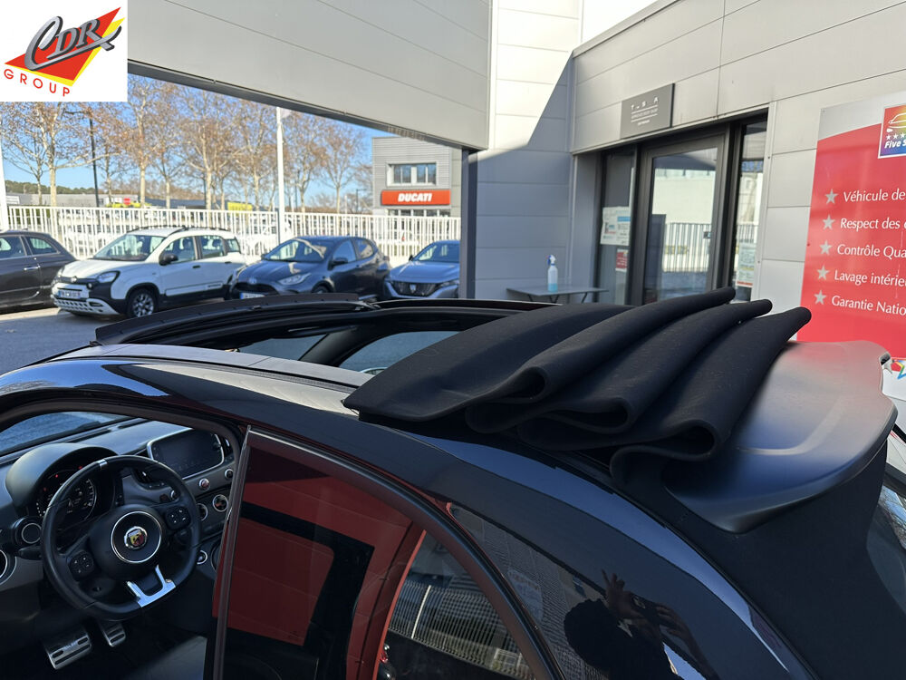 Equipements supplémentaires : ABS et EBD, Airbags conducteur et passager AV, Airbag genoux pour conducteur, Airbags rideaux, Airbags lateraux AV, Amortisseurs Cofap AV avec valve FSD, Amortisseurs Koni AR avec valve FSD, Banquette AR rabattable 50/50 avec 2 appui-tete reglables en hauteur, Climatisation automatique, Disques de freins 284mm x 22mm auto-ventiles a l'AV et 240mm x 11mm a l'AR, Double sortie d'echappement chromee, ESP (Electronic Stability Program) avec MSR (Regulation de l'inertie moteur), AFU (Aide au freinage d'urgence), ASR (Anti-patinage) et Hill Holder (Systeme d'aide au demarrage en cote), Fixations ISOFIX pour les sieges enfants a l'AR, Kit Turismo/Competizione monte en usine - Pommeau de levier de vitesse alu, pedialier metal, seuils, Kit Turismo/Competizione monte par le distributeur - Filtre a air BMC, bouchons de carburant et, Manometre de mesure de pression du turbo, Mode Sport : fonction qui agit sur les performances moteur, sur le systeme de freinage, ainsi que, Motorisation 165 ch, Option negative Kit + MO Distributeur, Poignees de portes, de coffre, baguette entourant le logo AV et coques de retroviseurs exterieurs, Projecteurs antibrouillard AV, Projecteurs antibrouillard integres, Retroviseurs exterieurs electriques et degivrants, Siege conducteur reglable en hauteur, Sieges Sport Abarth cuir, Systeme Uconnect 7'' HD NAV LIVE, TTC (Torque Transfer Control) : controle electronique du transfert de couple, Uconnect 7'' HD Nav LIVE + Apple CarPlay et Android Auto, Vitres AR et lunette AR privatives, Volant cuir avec point milieu et branche inferieur couleur aluminium, Capteurs de pluie et de luminosite, Etriers de freins rouges, Peinture metallisee Noir Scorpione, Systeme Hi-Fi Beats Audio 7HP 480Watts.