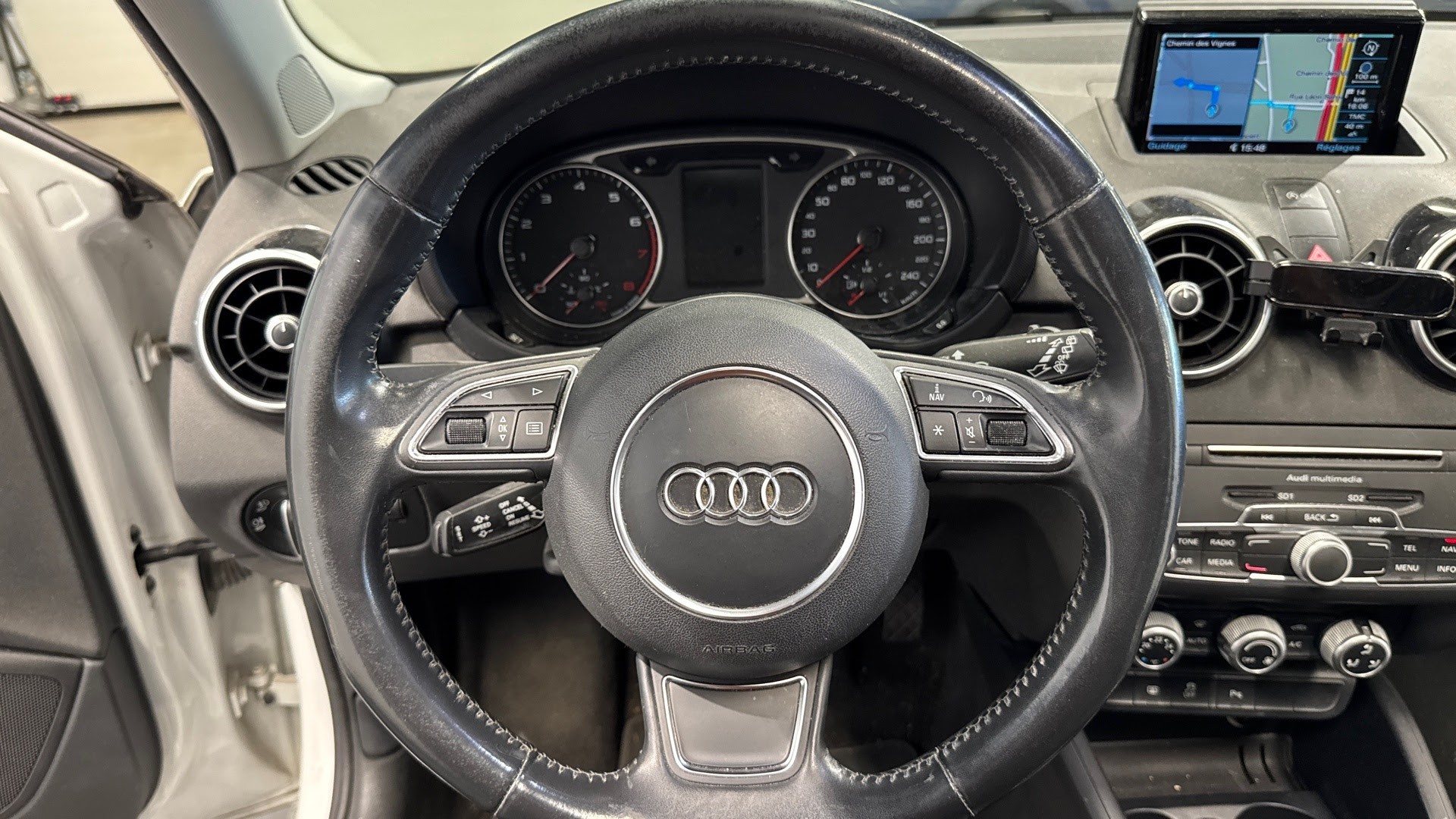 ***SOUS RESERVE D'ERREUR DE REDACTION ET D'OPTIONS*** Equipements supplémentaires : Accoudoir central AV, Advanced key, Airbags grand volume conducteur et passager AV, Airbags lateraux a l'AV integres dans les dossiers des sieges a l'AV : un systeme d'airbags de tete, Allume-cigare et cendrier sur la console centrale a l'AV, Appuis-tete AV et AR reglables, Assistant de freinage en cas de collision, Audi Music Interface, Blocage electronique de differentiel EDL, aide au demarrage, freine automatiquement les roues, Boite a gants grand volume et eclairee cote passager, Cache-bagages amovible, Carrosserie galvanisee (entierement galvanisee aux endroits sensibles a la corrosion), autoportante,, Ceintures de securite 3 points automatiques pour toutes les places, pretensionneurs pyrotechniques,, Chassis Sport avec suspension et amortissement fermes, Clignotants avec fonction autoroute : une breve impulsion sur la manette active, Climatisation automatique Confort, Colonne de direction de securite complete le potentiel de protection des ceintures et des airbags, Console centrale avec 2 porte-boissons et vide-poche complementaire, Contact d'allumage, electronique, cle de contact pouvant memoriser differentes donnees d'entretien, Contre-portes avec partie centrale en tissu et accoudoir integre, Controle de ceinture attache pour toutes les places, un signal acoustique et visuel a l'AV previent, Controle de pression des pneumatiques, Cric, range dans le coffre, Detecteur de pluie et de luminosite incluant bande grise dans la partie superieure du pare-brise, Direction assistee particulierement sportive et directe avec assistance electromecanique,, Dossier de banquette AR rabattable en 2 parties, 1/3, 2/3 ou completement, Eclairage interieur a temporisation avec contacteurs sur toutes les portieres; eclairage du coffre, Ecran central avec eclairage reglable, Ecrous antivol, Embouts d'echappement chromes, Entourage de diffuseurs d'air couleur contrastee, ESC avec blocage transversal electronique : Le controle electronique de stabilisation (ESC) assure, Essuie-glaces 2 vitesses, intermittence reglable a 4 positions, commande de balayage coup par coup, Feux de freinage adaptatifs, les feux de detresse clignotent en cas de freinage d'urgence afin de, Feux stop et feux AR a LED avec nouveau design tridimensionnel, Fixation Isofix pour sieges AR, Identification du modele /technologie sur le capot de coffre, Lave phares haute pression, Leve-vitres electriques avec protection anti-pincement, fonction ouverture/fermeture confort par le, Lunette AR degivrante avec minuterie, chauffage supplementaire de l'extremite inferieure de l'essuie, MMI Radio (Concert), incluant concept de commande MMI avec ecran couleurs de 6,5 pouces, lecteur CD, Oeilletons de fixation, 4 dans le coffre, pour maintenir les bagages et objets, points de fixation, Ordinateur de bord avec ecran monochrome de 3,5 pouces, Outillage de bord dans le coffre, Pack Aluminium a l'interieur, Pack Connectivity, Pack Eclairage interieur a LED, Pack Navigation avec donnees de navigation (carte SD), Pare-soleil rabattables et pivotants cote conducteur et passager AVavec miroir de courtoisie eclaire, Parking System Plus avec signal sonore et visuel sur l'ecran du MMI des distances AV et AR, Poignees de maintien rabattables et amorties, integrees au ciel de pavillon, Preparation pour telephone portable (Bluetooth), commande sur volant multifonction,, Prise de courant 12 volts sur la console centrale, Projecteurs antibrouillard, Projecteurs Xenon Plus avec feux de jour a LED, incluant feux stop, feux AR et feux declairage, Protection laterale anticollision avec barres extremement rigides dans les portieres et une, Regulateur de vitesse incluant ordinateur de bord avec programme efficiency, Retroviseur interieur avec reglage jour/nuit automatique, Retroviseurs exterieurs degivrants, escamotables + buses de lave-glace chauffantes, Retroviseurs exterieurs electriques, Securite enfants sur les portieres et les vitres electriques AR, Sellerie Cuir Milano, Sieges Sport AV avec bourrelets lateraux enveloppants, reglables manuellement, Sortie d'echappement visible simple a gauche, Systeme d'appuis-tete integral, grace a la conception du siege, le haut du corps est receptionne et, Systeme de ventilation et de chauffage reglable sur 4 niveaux, 4