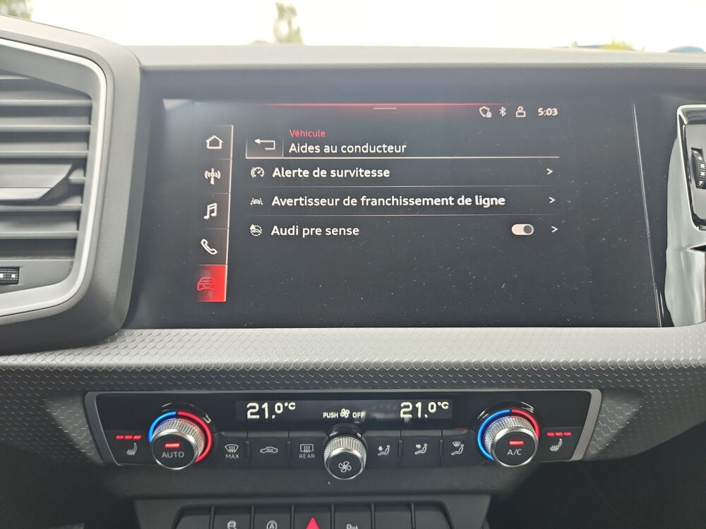 AUDI A1 SPORTBACK 30 TFSI 110 ch BVM6 Advanced 2// Aide au démarrage en pente Aide au parking Allumage automatique des phares Android Auto Apple Carplay Assistance au freinage d'urgence Assistant dynamique au maintien de voie Boîte manuelle 6 vitesses Climatisation manuelle Commande vocale pour téléphone Démarrage sans clé Essuie-glaces automatiques Feux arrière LED Feux avant LED Front Assist Interface Bluetooth Jantes/roues en alliage léger 17 Kit de réparation pneus (Mobile Tyre) Limiteur de vitesse Radar de stationnement arrière Radar de stationnement avant Reconnaissance des panneaux de signalisation Régulateur de vitesse Rétroviseur conducteur réglable électriquement Rétroviseurs extérieurs dégivrants Rétroviseurs extérieurs rabattable électriquement Sièges avant Sport Sièges avant chauffants Soundsystem Système Start/Stop Système information conducteur Vitres arrière surteintées