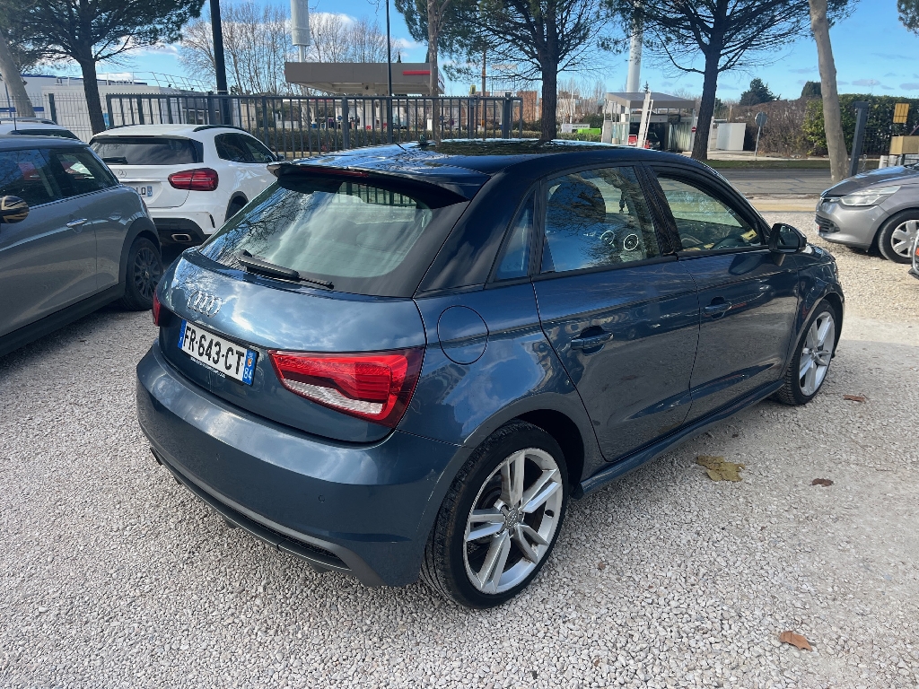 AUDI A1 SPORTBACK (1.6 TDI 116 S line) Bleu métal.ABS, Accoudoir central, Airbags frontaux, Allumage automatique des feux, Bluetooth, Climatisation automatique, Direction assistée, ESP, Fermeture centralisée, Fixation ISOFIX, Jantes aluminium, Ordinateur de bord, Phares à LED, Phares antibrouillard, Radar arrière de détection d'obstacles, Radio CD, Régulateur de vitesse, Rétroviseurs dégivrants, Rétroviseurs électriques, Stop and start, Vitres électriques, Volant cuir, Volant multifonctions, Volant réglable,, 5 vitesses, 4 places, puissance fiscal : 6, puissance din : 116, émission de CO2 : 100 g/km.