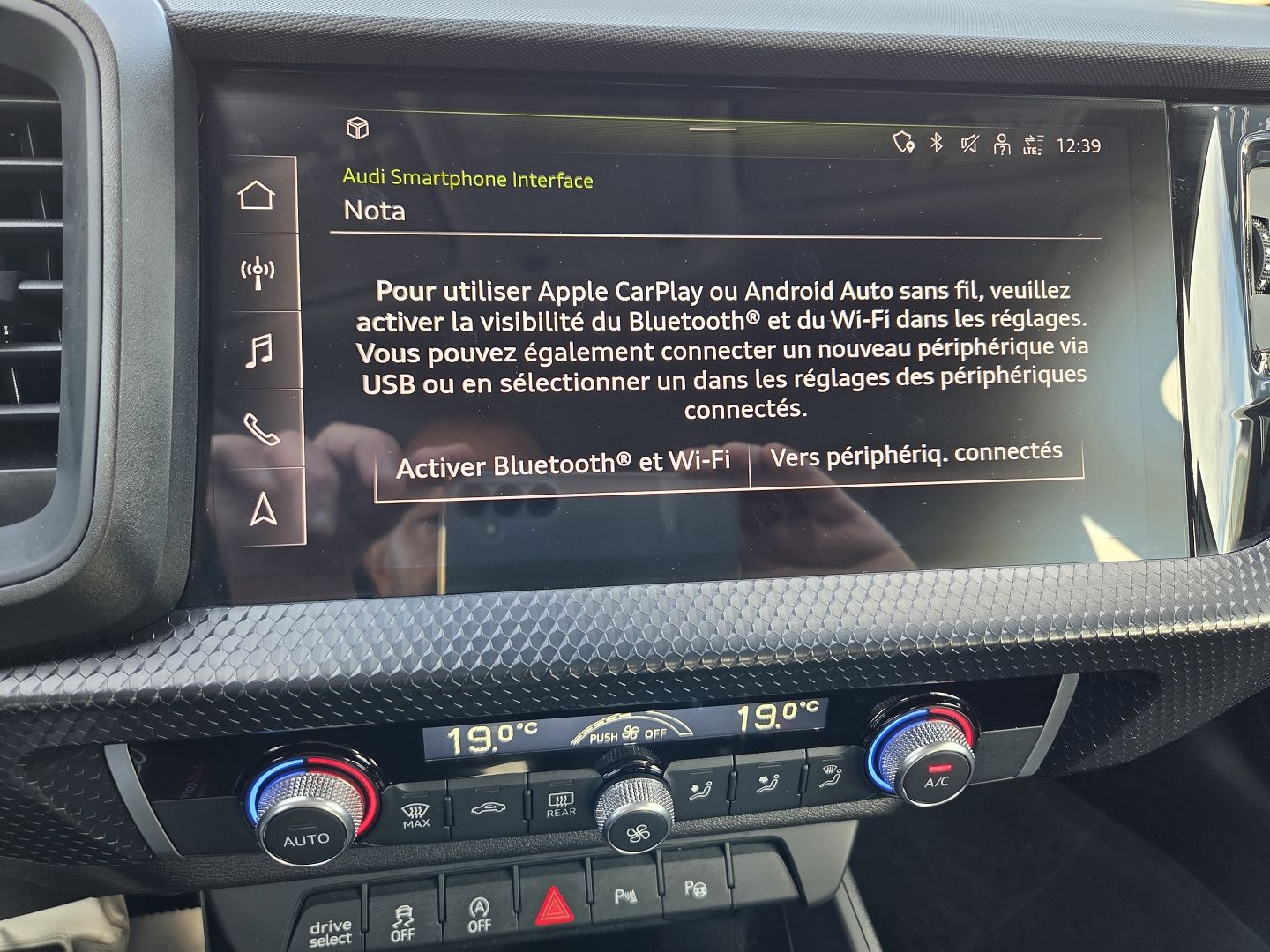 Accoudoir central avant,Audi connect navigation divertissement+,Audi parking system plus,Audi pre sense basic,Audi smartphone interface,Caméra de recul,Clim automatique confort 2 zones,JA coulé 16 10 brch,Nav MMI+ av MMI touch+Audi virt cockpit,Pack coffre,Sièges avant chauffants,Style aluminium à l'intérieur,Volant cuir 3 brch multfct+,ANDROID AUTO,APPLE CAR PLAY,DETECTEUR ANGLES MORTS,Capteur de luminosité,Capteur de pluie,Détecteur de sous-gonflage,Ecran multifonction couleur,Feux de jour,Fonction MP3,Jantes en alliage,Kit mains-libres Bluetooth,Prise USB,Radio numérique DAB,Régulateur de vitesse,ecran tactile