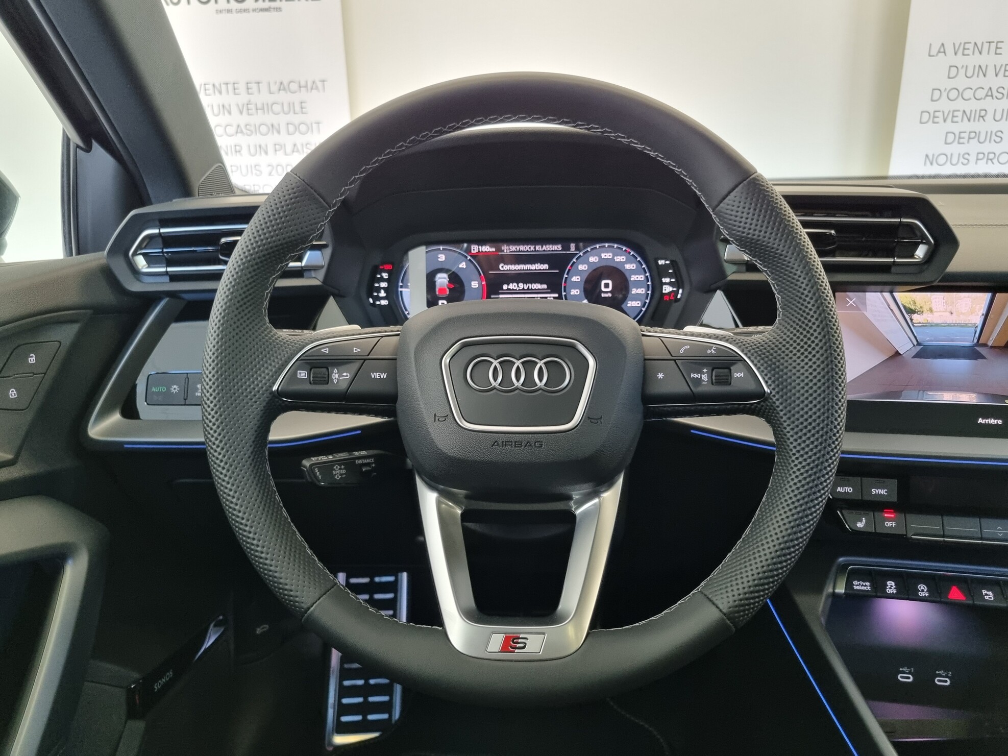 Equipements : Accoudoir de portière en similicuir, Applications décoratives en aluminium Spectre foncé, Boîtiers de rétroviseurs extérieurs dans la couleur de la carrosserie, Kit réparation, Pack extérieur S line, 2 ports de charge USB AR, Accoudoir central coulissant en longueur, avec