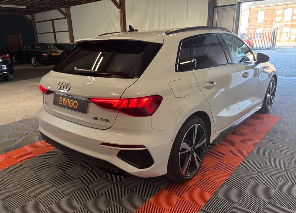 AUDI A3 Blanc Nacré 2022 - SPORTBACK 1.5 35 TFSI 150ch HYBRID MHEV S-LINE S-TRONIC 7 BVA/SIÈGES CHAUFFANTS - CARPLAY - ATTELAGEGarantie : 6 mois (Constructeur)