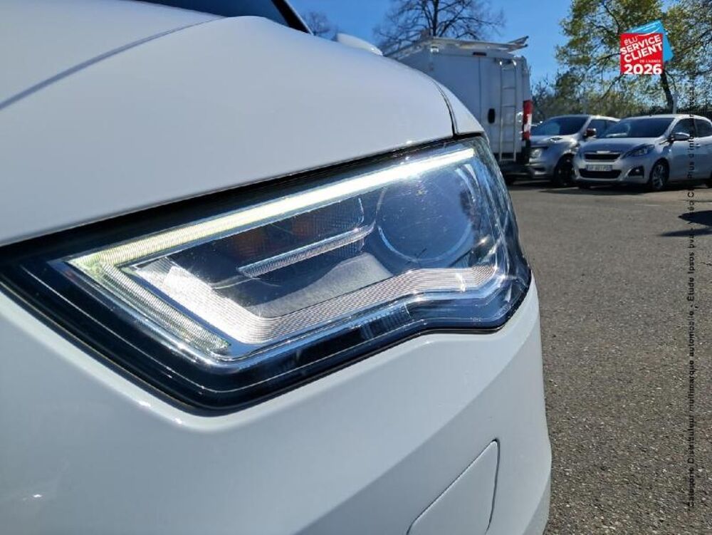 Adaptive lights,Audi connect,Audi phone box,Blanc glacier,Sièges avant chauffants,Tissu Rallye Noir/Argent,Toit panoramique en verre,CFG,8 Haut parleurs,ABS,Accoudoir central AV avec rangement,Aide au freinage d'urgence,Airbag conducteur,Airbag genoux,Airbag passager,Airbags latéraux avant,Airbags rideaux AV et AR,Antidémarrage électronique,Antipatinage,Arrêt et redémarrage auto. du moteur,Bacs de portes avant,Banquette 60/40,Banquette AR rabattable,Banquette arrière 3 places,Becquet arrière,Blocage électronique du différentiel,Boite à gants fermée,Boucliers AV et AR couleur caisse,Buses de lave-glace chauffantes,Capteur de luminosité,Capteur de pluie,Ceintures avant ajustables en hauteur,Chassis Sport,Clim automatique bi-zones,Compte tours,Contrôle de freinage en courbe,Contrôle élect. de la pression des pneus,EBD,Echappement à double sortie,Ecran multifonction couleur,ESP,Essuie-glace arrière,Feux de freinage d'urgence,Feux de jour,Filtre à particules,Filtre à Pollen,Fixations Isofix aux places arrières,Follow me home,Fonction MP3,Jantes Alu,Kit Fumeur