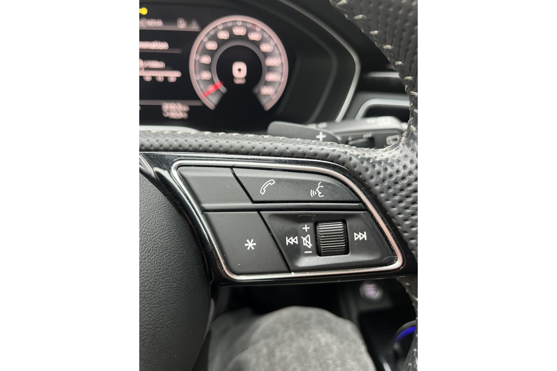 Volant 3 branches multifonction plus en cuir badgé S line avec méplat et poignées de volant en cuir perforé, avec palettes de changement de vitesse