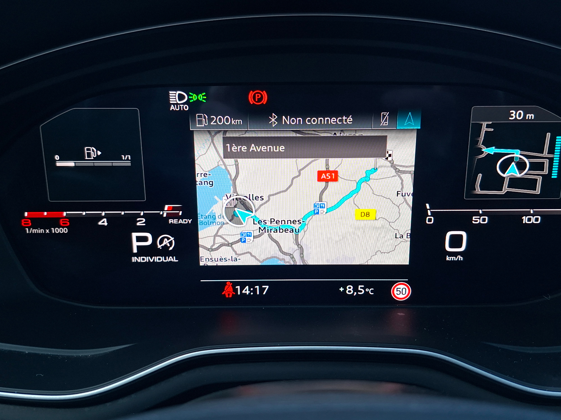 Equipements : Jantes en aluminium coule style 5 branches en Y, 8,0 Jx18", avec pneus 245/40 R 18, Systeme Start & Stop