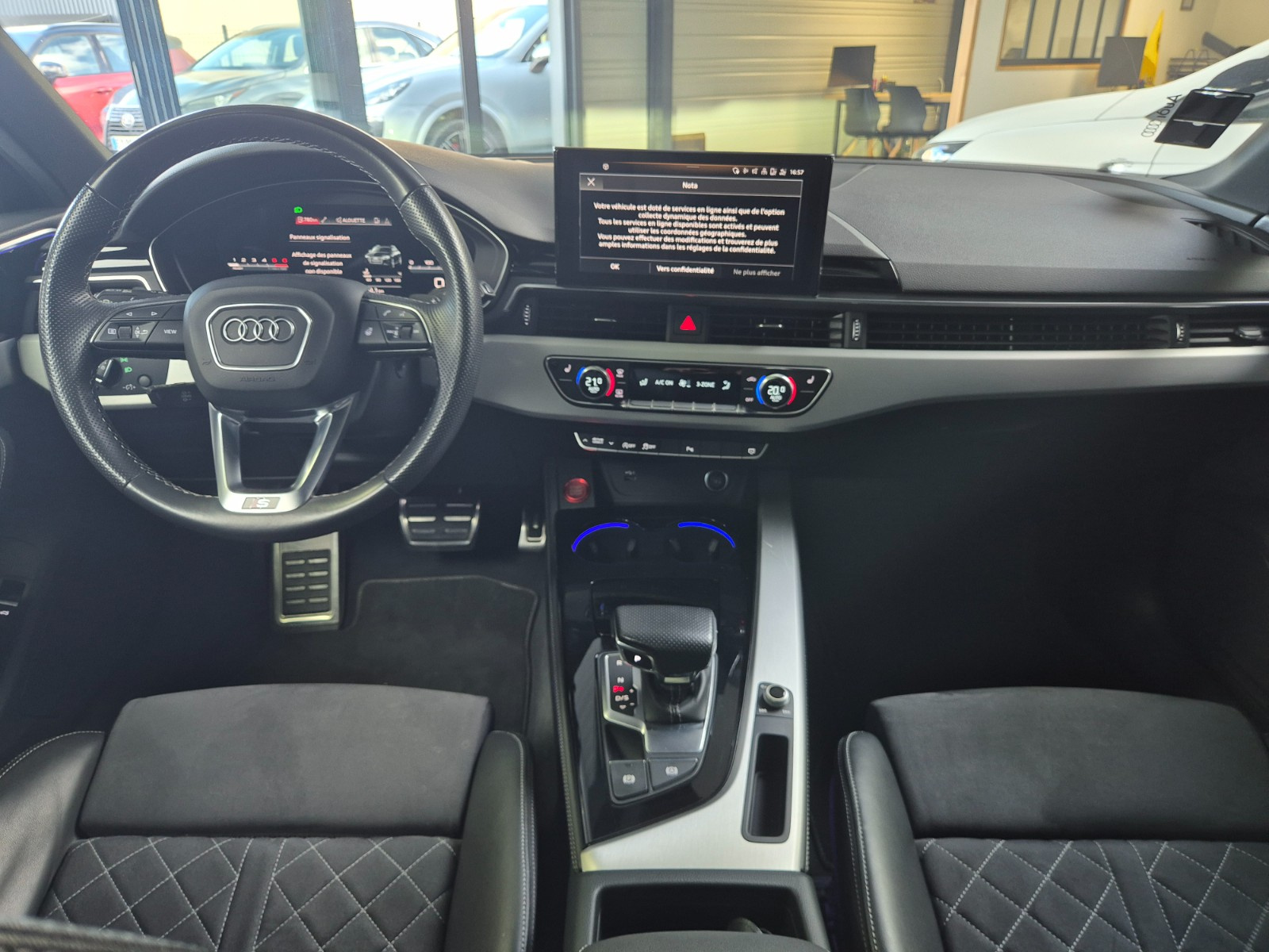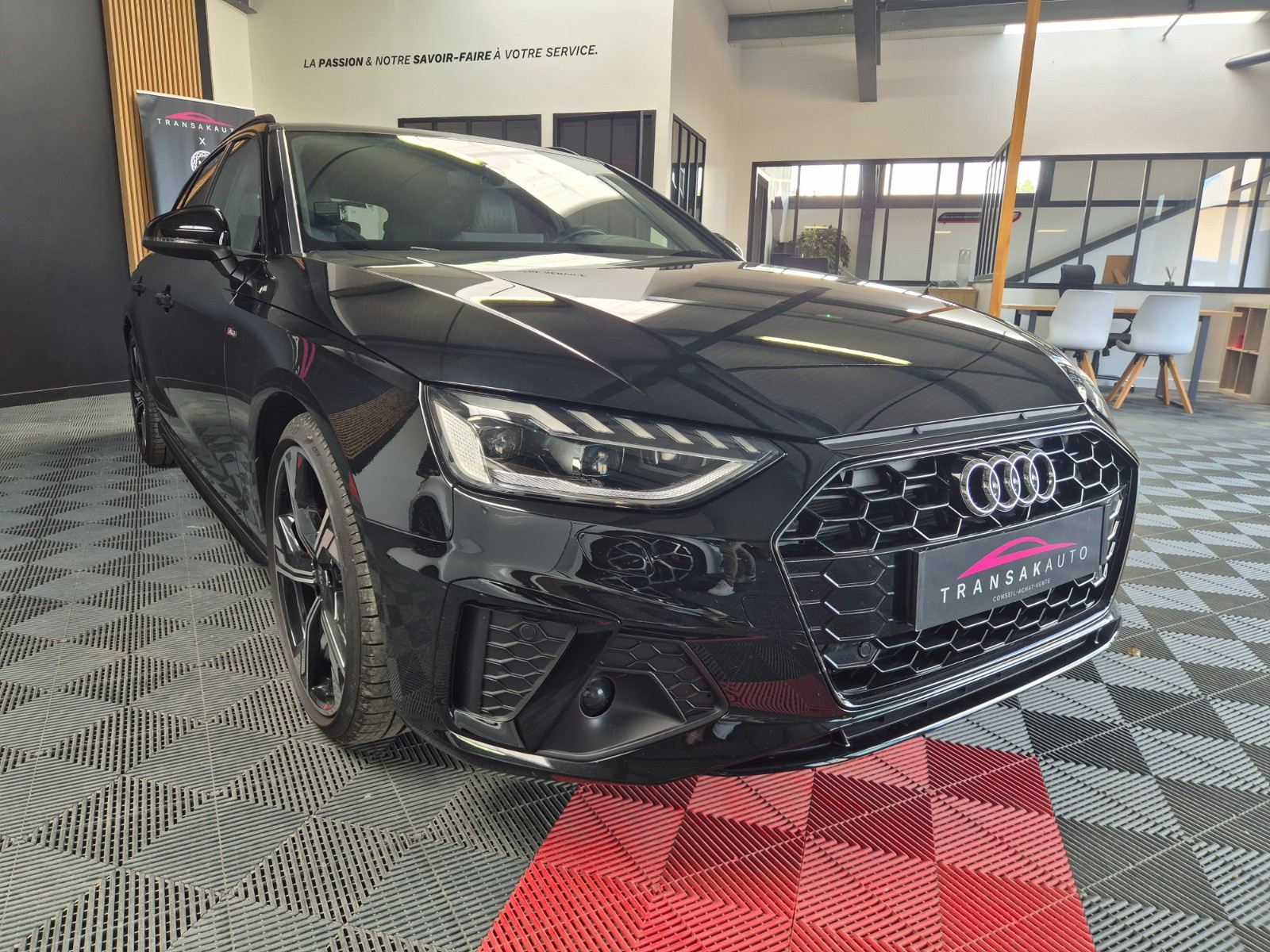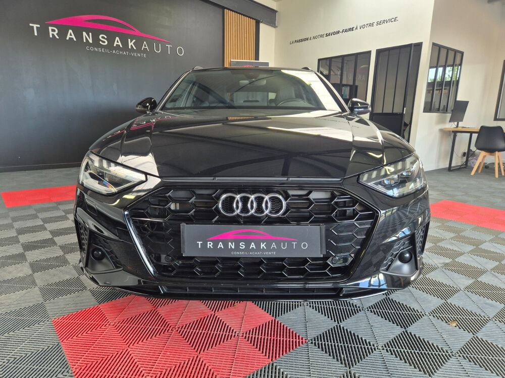 AUDI A4 AVANT 40 TDI 204 S tronic 7 S Edition// AUDI Matrix Led Accoudoir avant Accès Internet Aide au démarrage en pente Airbag conducteur Airbag latéral conducteur et passager Airbag passager Allumage automatique des phares Android Auto Antidémarrage Apple Carplay Banquette/sièges arrière rabattable Boîte automatique 7 vitesses Boîte à commande séquentielle Buses de lave-glace chauffantes Ceintures avant avec prétensionneurs Climatisation automatique 3 zones Contrôle de traction Contrôle pression pneus (RDC) Différentiel à glissement limité automatique Dispositif de recharge à induction Démarrage sans clé Détecteur pluie ESP (programme de stabilité électronique) Ecran tactile Ecrous de roue antivol Feux de jour Feux indicateurs de changement de direction Filet de séparation Garnitures intérieures métal Installation téléphone mains libres Interface Bluetooth Kit de réparation pneus (Mobile Tyre) Lave-phares Ordinateur de bord Pneus spéciaux Préparation attelage de remorque Rampes/barres de toit Rideaux pare-soleil vitres AR latérales manuels Rétroviseur conducteur réglable électriquement Rétroviseur extérieur électrochrome Rétroviseur intérieur électrochrome Rétroviseur passager réglable électriquement Rétroviseurs extérieurs dégivrants Rétroviseurs extérieurs rabattable électriquement Siège avant massant Siège conducteur chauffant Siège conducteur réglable éléctriquement Siège conducteur à réglage lombaire électrique Siège passager chauffant Siège passager réglable éléctriquement Siège passager à réglage lombaire électrique Sièges avant Sport Sièges en alcantara Sièges en cuir partiel Sièges en similicuir Soundsystem Suspension confort Système Start/Stop Système audio à commande vocale Système de navigation Système information conducteur Toit ouvrant panoramique Téléassistance USB jack Verrouillage centralisé télécommandé Vitres acoustiques Vitres arrière surteintées Vitres athermiques Volant en cuir