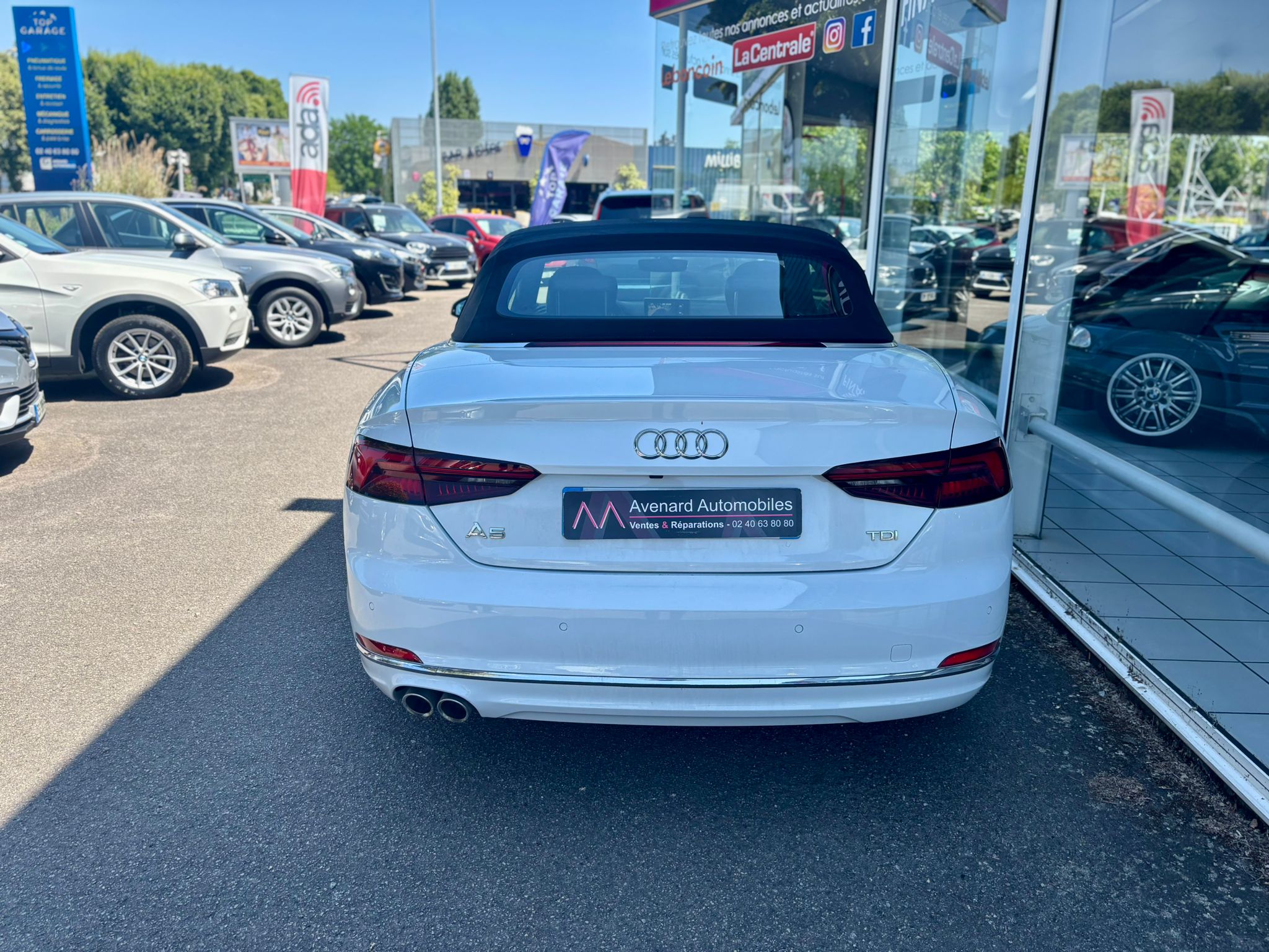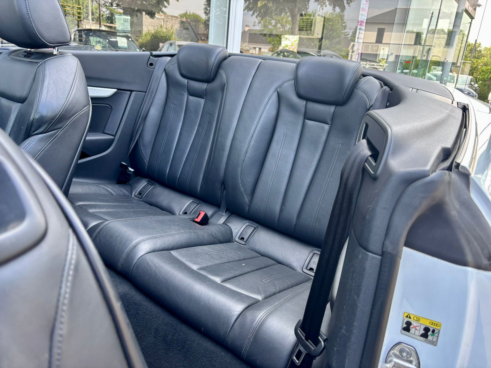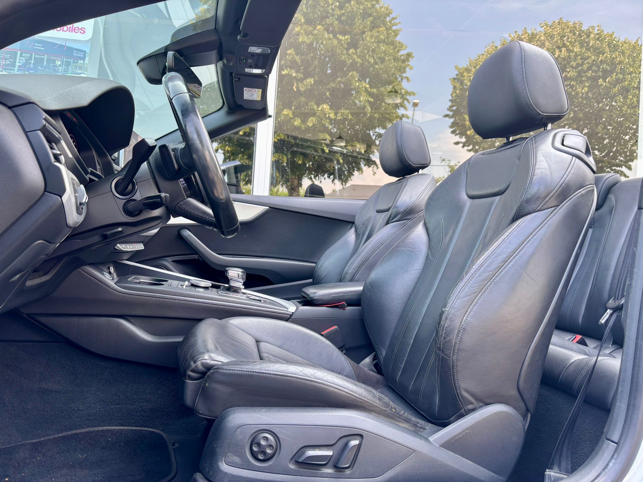 Equipements supplémentaires : Acces confort, Accoudoir central AV confort avec inclinaison reglable et coulissant en longueur, Affichage du controle de pression des pneumatiques, Airbags grand volume conducteur et passager AV, Airbags lateraux AV, Allume-cigare et cendrier, Antipatinage electronique ASR, Applications decoratives en aluminium Ellipse, Appuis lombaires a 4 axes avec reglage electrique pour les sieges conducteur et passager AV, Audi Connect avec une carte SIM de donnees integree (valable pour 36 mois), Audi Drive Select, Audi Parking System Plus: Signal acoustique et visuel d'aide au stationnement AV et AR par, Audi Phone Box avec charge du telephone par induction (standard Qi), Audi Pre Sense City, Audi Smartphone Interface (Apple CarPlay ou Google AndroidAuto), Audi Sound System, Audi Sound System : 10 HP ncluant un HP central dans le tableau de bord et un subwoofer dans le, Blocage electronique de differentiel EDS, Cables de recharge pour telephone portable, compatibles iPhone et Android, Camera de recul, Capote acoustique entierement automatique pouvant etre activee jusqu'a 50km/h., Ceinture de securite AV avec microphone integre pour une meilleure qualite audio lors des appels, Ceintures de securite, automatiques a 3 points pour les sieges, avec controle de port de ceinture, Chassis dynamique, Ciel de capote en tissu, selon la couleur interieure choisie, Cle confort (Keyless entry) : systeme de verrouillage et de deverrouillage du vehicule, Climatisation automatique confort 3 zones, en plus de la climatisation automatique, Coffre de capot a ouverture automatique, Colonne de direction de securite contient un systeme mecanique de deplacement avec fonction d'amorti, Controle electronique de stabilisation (ESC), Cric et outillage de bord, Desactivation de l'airbag passager, Detecteur de pluie et de luminosite, Direction assistee electromecanique, Dispositif anti-erreur de carburant, Dossier banquette AR rabattables en deux parties 50/50, Eclairage interieur a extinction temporisee et contacteurs sur toutes les portieres, Ecrous de roues antivol, Elements exterieurs specifiques Design, Embouts de sortie d'echappement chromes, Feux AR rouges a LED rouges, avec feux de recul blancs et feux de brouillard AR integres,, Feux AR rouges, avec feux de recul blancs et feux de brouillard AR integres, Fixation pour sieges enfants ISOFIX et Top Tether pour les places exterieurs, Fixation pour sieges enfants ISOFIX pour le siege passager AV avec commande de desactivation, Frein de stationnement electromecanique, avec fonction de frein de stationnement a l'arret,, Identification du modele et de la technologie sur le capot de coffre, Interface Bluetooth avec commande vocale, Keyless Go: demarrage et arret du moteur par touche moteur Start/Stop sur la console centrale, Limiteur de vitesse reglable, Logement de capote a configuration variable, avec caisson de capote abaissable automatiquement, MMI Navigation plus avec MMI touch inclut en plus du MMI Navigation, MMI Radio Plus, inclut radios AM/FM, lecteur de cartes SDCX, prise d'entree AUX, lecteur CD, Moulures de seuil avec insert en aluminium dans les ouvertures des portieres AV, Moulures de seuil eclairees avec insert en aluminium, Pack Brillance, Pack Eclairage, Pack Rangement et Coffre, Pare-soleil, Partie inferieure de la console centrale (repose-genoux) en simili-cuir, Phares a LED, avec clignotants AR a LED dynamiques, Preparation pour crochet d'attelage, Protection antidemarrage electronique, integree a la gestion du moteur, activation automatique par, Recuperation d'energie, generee lors des phases de freinage ou de deceleration et systeme Start/Stop, Regulateur et limiteur de vitesse, Reservoir AdBlue de 12 l, Retroviseur interieur sans encadrement jour/nuit automatique, Retroviseurs exterieurs avec clignotants a LED integres, Retroviseurs exterieurs reglables et escamotables electriquement, degivrants des deux cotes, Roue de secours a faible encombrement, Roue de secours temporaire, S tronic, boite sequentielle 7 vitesses a double embrayage, Sellerie Cuir Milano, Sieges AV reglables electriquement, Sieges AV reglables manuellement en hauteur et en profondeur, reglage manuel des appuie-tete, Sorties d'echappement monoflux avec 2 sorties a gauche, Systeme de freinage avec freins a disque a l'AV/AR, Tapis complementaires AV et AR, Tire Mobility System, Triangle de presignalisation, Vide-poches, Vitres athermiques, Volant 3 branches multifonction plus en cuir, Assistant de feux de route, activaction et desactivation automatique des feux de route, Audi Hold Assist, Augmentation de la capacite du reservoir d'AdBlue a 24