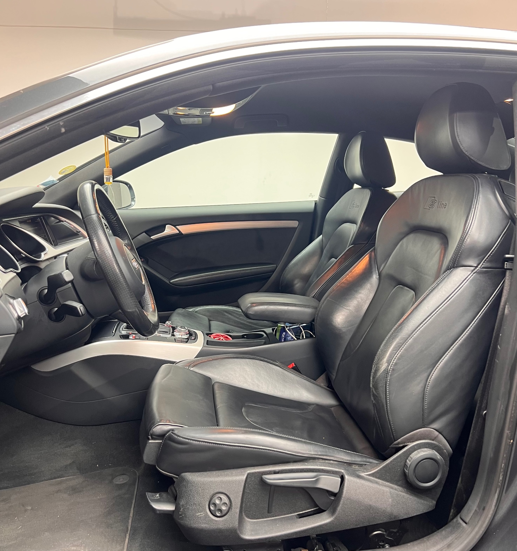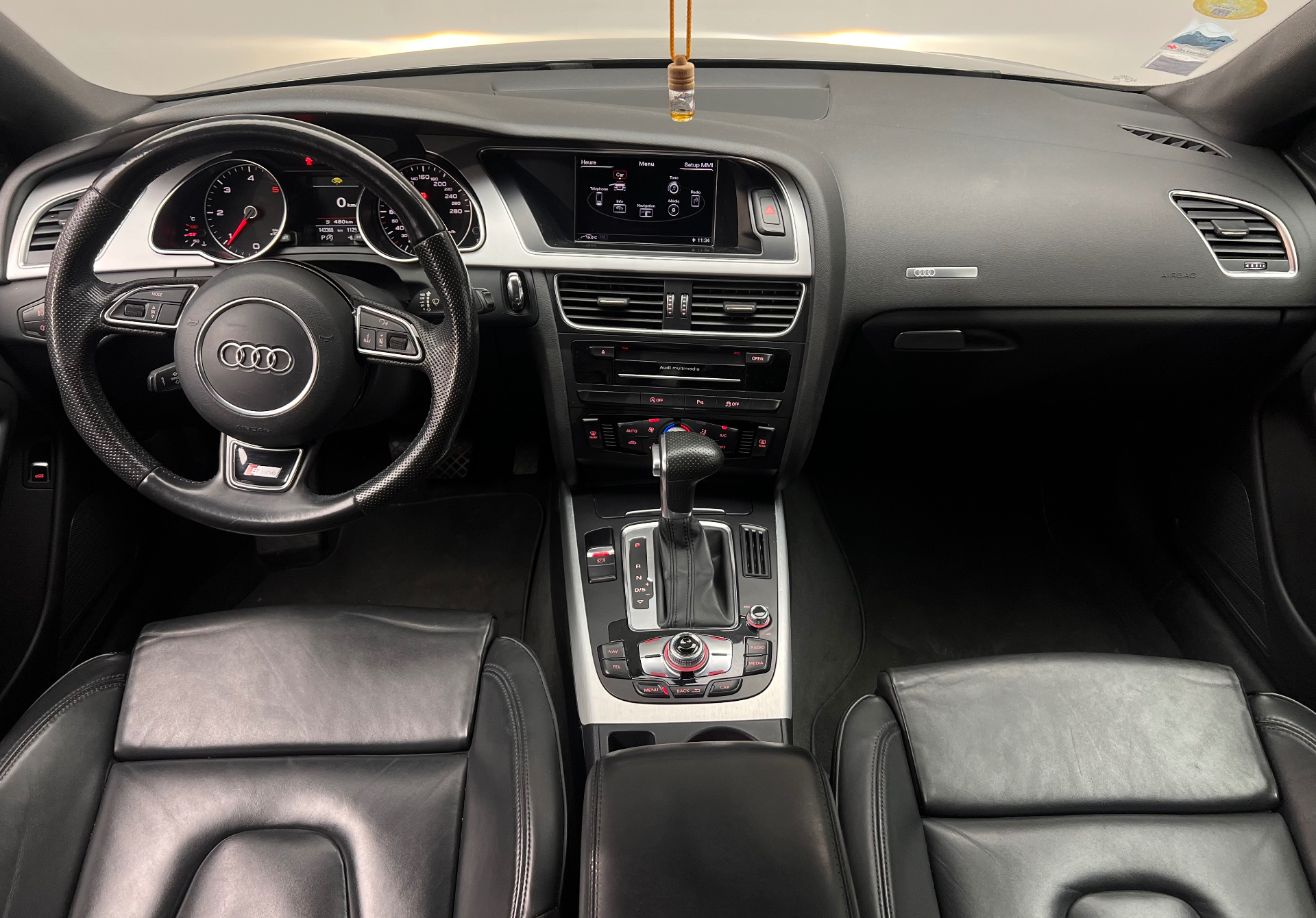 electriques sur 4 plans pour sieges AV, Regulateur de vitesse electronique, actif des 30 km/h, inclus fonction de freinage. Affichage de la, Reservoir avec protection contre les erreurs de ravitaillement, Retroviseur interieur jour/nuit automatique, bande grise de pare-brise, Retroviseurs exterieurs avec clignotant lateral integre a diodes, reglable electriquement, boitiers, Retroviseurs exterieurs et buses de lave-glace chauffantes, Roue de secours temporaire, Sellerie cuir/Alcantara avec sieges AV Sport et appuis lombaires electriques, Sellerie mixte cuir/Alcantara perfore avec logo S line, Sieges AV reglables manuellement en hauteur et en profondeur, appuie-tetes reglables manuellement, Sieges AV Sport, Sieges AV sport incluant reglage de la longueur d'assise et appuis lombaires electriques sur 4 plans, Sortie d'echappement visible double a gauche, Style aluminium, dans l'habitacle sur les commutateurs d'eclairage, la commande de climatisation, la, Systeme acoustique ...