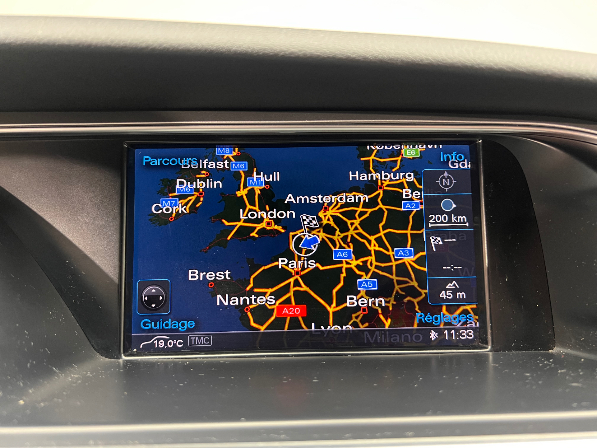 Equipements supplémentaires : 4 Oeilletons de fixation dans le coffre, Accoudoir central AV relevable avec vide-poches ferme et 2 prises 12V dans la console centrale, Accoudoir central AV relevable avec vide-poches ferme par abattant; 2 prises 12V dans la console cen, Airbag grand volume pour conducteur et passager AV avec detecteur de la position d'assise, airbag, Airbag lateraux, Airbags de tete Sideguard, Allume-cigare integre au cendrier a l'AV, Anti-patinage (ASR), Applications decoratives en aluminium brosse mat, Appuis-tete AV et AR reglables en hauteur et inclinables, Audi Music Interface: relie un Apple iPod a partir de la generation 4, ainsi que d'autres dispositif, Avertisseur 2 tons, avec commande au centre du volant, Blocage electronique de differentiel EDS, Calandre Singleframe avec lamelles horizontales noires brillantes, Capot de coffre a ouverture automatique (fermeture manuelle), Carrosserie entierement galvanisee contre la corrosion, Ceintures de securite, automatiques a 3 points pour les 4 places, avec controle de port de ceinture, Cendriers dans la console centrale a l'AV et a l'AR, Changeur 6 CD compatible MP3 ou WMA dans la boite a gants, Chassis dynamique, Chassis sport avec amortissement plus ferme, suspensions renforcees, Ciel de pavillon en tissu Noir, Climatisation automatique Confort Plus 3 zones, ajoute a la climatisation automatique:, Colonne de direction de securite complete le potentiel de protection des ceintures et des airbags, Contact d'allumage, electronique, cle de contact pouvant memoriser differentes donnees d'entretien, Controle de pression des pneumatiques, Controle electronique de stabilite ESC, reliie ABS, ASR et EDS a ses propres capteurs et compare les, Cric, range dans le coffre, Desactivation de l'airbag passager, Detecteur de pluie et de luminosite, Detecteur de pluie et de luminosite incluant fonction Coming home/Leaving home et bande grise en, Direction assistee servotronic asservie a la vitesse, Dossier de banquette AR rabattable separement 2/3 - 1/3, avec deverrouillage a distance, Eclairage interieur a temporisation et contacteurs sur toutes les portieres; eclairage du coffre,, Ecrous antivol, Entourages de vitre aluminium, revetement noir brillant sur les montants de pavillons centraux et, Etui a lunettes dans le module d'eclairage interieur AV au dessus du retroviseur interieur, Frein de stationnement electromecanique, avec fonction de frein de stationnement a l'arret,, GPS Plus: systeme de navigation GPS de 3eme generation avec DVD Europe commande par le MMI, guidage, Indicateur d'usure des disques a l'AV, affichage sur le systeme d'information du conducteur, Indicateur de rapport de vitesse dans le systeme d'information du conducteur, Indicateur de temperature exterieure, Inscription S line sur seuils des portes et ailes AV, Instrumentation a eclairage reglable avec tachymetre electronique avec compteur kilometrique, Lave phares haute pression, Lave-glace 2 vitesses, 4 reglages d'intermittence, balayage coup par coup et lavage-balayage, Leve-vitres electriques AV avec protection anti-pincement, fonction Confort ouverture/fermeture, Limiteurs d'effort sur les ceintures de securite AV, Lunette AR degivrante avec minuterie, Oeilletons de fixation dans le coffre, 4 oeilletons facilitant la fixation du chargement, Ordinateur de bord couleur et controle Autocheck incluant programme Efficiency, Outillage de bord dans le coffre, Pack Eclairage: spots de lecture AR, commande interieure de verrouillage des portieres,, Pack Exterieur S line, Parking System : Systeme acoustique d'aide au stationnement AR, Phares antibrouillard integres dans le pare-chocs, Phares halogenes a projecteur ellipsoidal sous vitre transparente, reglage electrique du site des, Poignees de maintien rabattables dans les 2 sens et amorties, integrees au ciel de pavillon, Poignees de portieres exterieures laquees dans la couleur de carrosserie, poignees cintrees agreable, Pommeau de levier de vitesse en cuir perfore, surpiqures de soufflet de levier de vitesses argent, Preparation Isofix pour sieges lateraux AR et sieges passager AV, Preparation pour crochet d'attelage, Preparation pour telephone (Bluetooth) :, Preparation telephone 2W bi-bande (D et E), sans support pour adaptateur ni antenne de toit,, Pretensionneurs de ceintures de securite AV, Protection antidemarrage electronique, activation automatique au moyen de la cle du vehicule, Rangement dans la contre-porte AV avec portes-boissons, rangements a l'AR sur les cotes du siege et, Reglage d'appuis lombaires