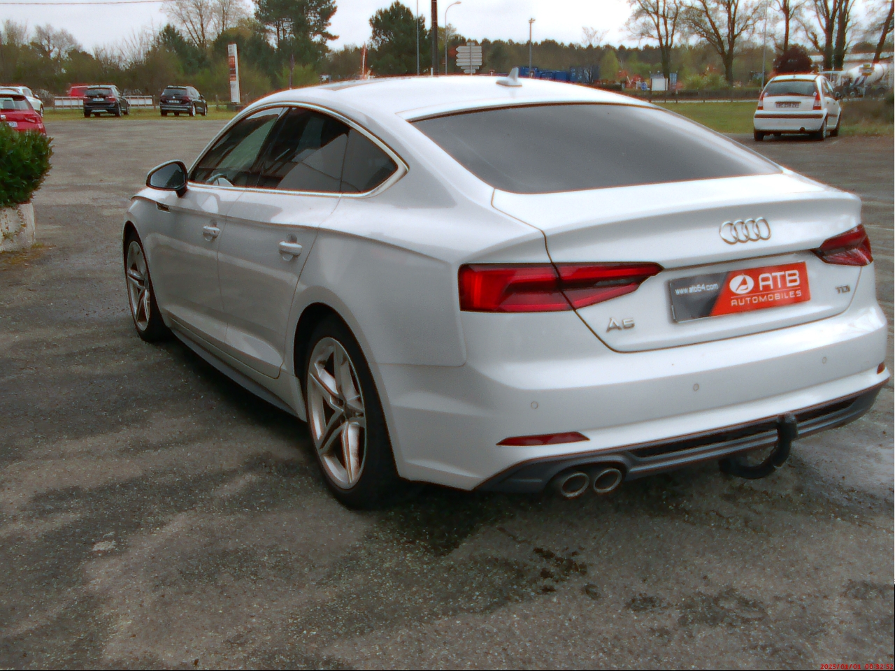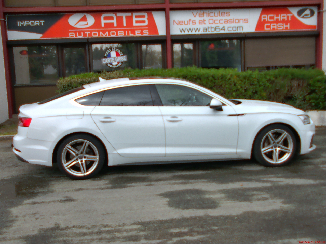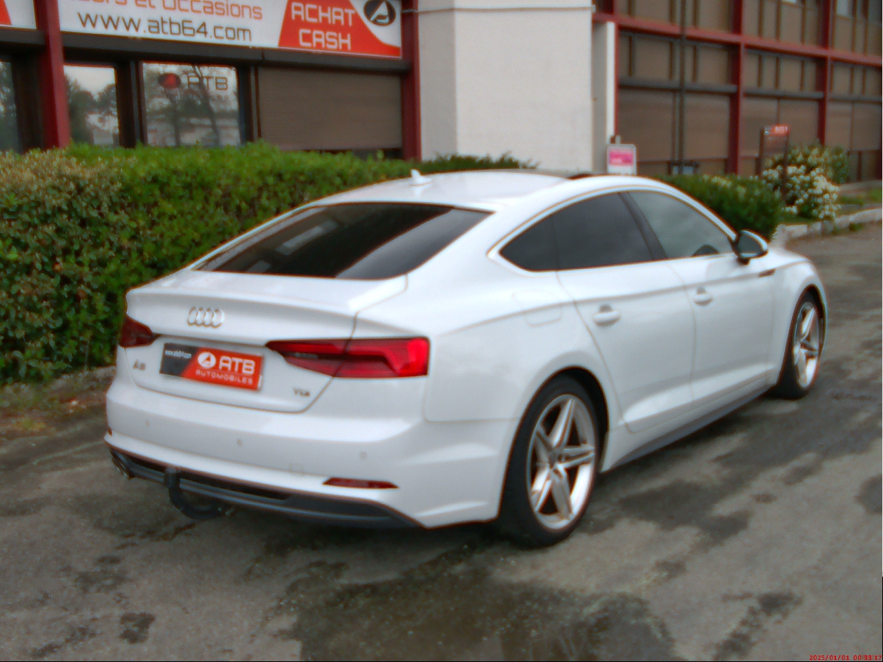 AUDI A5 SPORTBACK (A5 Sportback 40 TDI 190 S tronic 7 Business Line) BLANC.Accoudoir central AV confort avec inclinaison réglable et coulissant en longueur, Affichage du contrôle de pression des pneumatiques, Airbags grand volume conducteur et passager AV, Airbags latéraux à l'AV et système d'airbags de tête, Antipatinage électronique ASR, Applications décoratives Argent reflex métallique, Appuis lombaires à 4 axes avec réglage électrique pour les sièges conducteur et passager AV réglage horizontal et vertical, Audi Connect "Sécurité et Service", Audi Connect avec une carte SIM de données intégrée (valable pour 36 mois), Audi Drive Select, Audi Music Interface, Audi Parking System Plus: Signal sonore et visuel d'aide au stationnement AV et AR, Audi Phone Box avec charge du téléphone par induction (standard Qi), Audi Pre Sense City, Audi Smartphone Interface (Apple CarPlay ou Google AndroidAuto), Banquette AR 3 places, Blocage électronique de différentiel EDS, Câbles de recharge pour téléphone portable, compatibles iPhone et Android, Ceintures de sécurité, Châssis dynamique, Ciel de pavillon en tissu, selon la couleur intérieur choisie, Climatisation automatique confort 3 zones, en plus de la climatisation automatique, Colonne de direction de sécurité, Contrôle électronique de stabilisation (ESC), Désactivation de l'airbag passager, Détecteur de pluie et de luminosité, Direction assistée électromécanique, Dispositif anti-erreur de carburant, Dossier de banquette AR rabattable à distance et en trois parties 40 : 20 : 40 ou complètement, Eclairage intérieur à temporisation avec contacteurs sur toutes les portières, Ecrous de roues antivol, Feux AR rouges, Fixation pour sièges enfants ISOFIX et Top Tether pour les places extérieures AR, Frein de stationnement électromécanique, Hayon à ouverture et fermeture automatique, Identification du modèle et de la technologie sur le capot de coffre inscription quattro (sur versions quattro) sur la calandre, Interface Bluetooth avec commande vocale, Jantes en aluminium coulé style 15 branches 7.5Jx17" avec pneus 225/50 R17", Keyless Go: démarrage et arrêt du moteur par touche moteur Start/Stop sur la console centrale, Limiteur de vitesse réglable le conducteur peut définir une limite de vitesse maximum qui ne sera pas dépassée, MMI Navigation, MMI Radio Plus, Moulures de seuil avec insert en aluminium dans les ouvertures des portières AV, Pack Brillance, Pack Rangement et Coffre, Pare-soleil, Préparation pour crochet d'attelage, Protection antidémarrage électronique, Récupération d'énergie, Régulateur/Limiteur de vitesse, Réservoir AdBlue de 12 l, Rétroviseur intérieur sans encadrement jour/nuit automatique, Rétroviseurs extérieurs avec clignotants à LED intégrés, Rétroviseurs extérieurs réglables et escamotables électriquement, S tronic, Sécurité enfants, Sellerie tissu Index, Sièges AV réglables manuellement en hauteur et en profondeur, Sorties d'échappement monoflux avec 2 sorties à gauche, Système d'information du conducteur avec écran couleur haute résolution de 7", Système de freinage avec freins à disque à l'AV/AR, Système Start & Stop avec récupération d'énergie au freinage, Tapis complémentaires AV et AR, Tire Mobility System Compresseur et produit de colmatage en cas de crevaison, Triangle de présignalisation, Trousse de secours, Vide-poches, Vitres athermiques, Volant 3 branches multifonction en cuir avec palettes de changement de vitesse, Xénon plus incluant réglage automatique du site des phares et feux diurnes par bandeau de LED, 7 vitesses, 5 places, puissance fiscal : 10, puissance din : 190, émission de CO2 : 106 g/km.