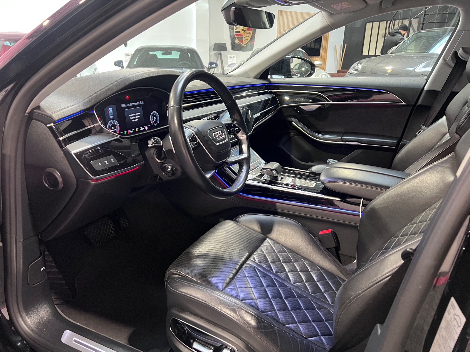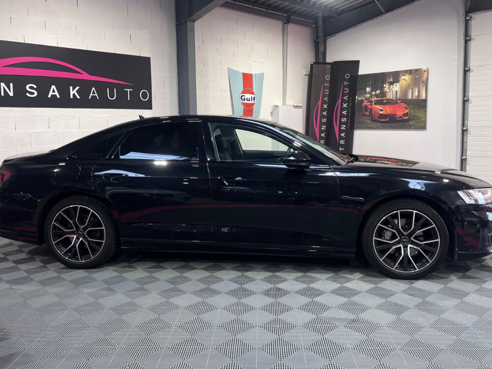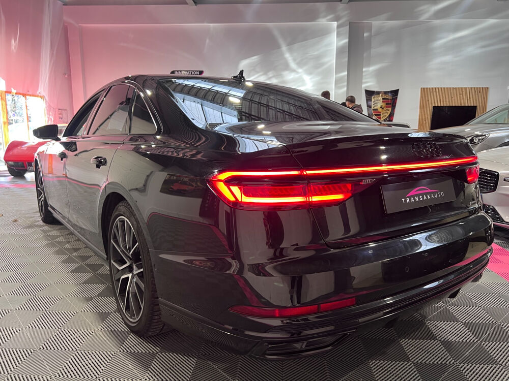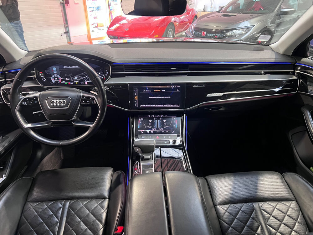 AUDI A8 A8 50 TDI 286 Tiptronic 8 Quattro Avus// 4 Roues directrices ACC Accoudoir arrière Accoudoir avant Affichage tête haute Aide au démarrage en pente Aide parking avec caméra de recul Airbag conducteur Airbag latéral conducteur et passager Airbag passager Airbags latéraux arrière Airbags rideaux avant Android Auto Apple CarPlay Appuie-tête avant éléctriques Caméra 360° Capteur de pluie Charge utile augmentée Climatisation automatique bizone Démarrage sans clé Détecteur actif d'angle mort Détecteur pluie Ecran tactile Ecrous de roue antivol Factures d'entretien Fermeture électrique Fixation pour siège enfant GPS Hayon électrique Installation d'alarme Installation téléphone mains libres Keyless-go Levier de vitesses en cuir Lumière d'ambiance intérieur à LED Ouverture sans clef Pack LED interieur Prise 12V Préparation attelage de remorque Préparation du système de géolocalisation véhicule Radar de stationnement arrière Radar de stationnement avant Roue de secours standard Régulateur de vitesse adaptatif Rétroviseur extérieur électrochrome Rétroviseurs extérieurs dégivrants Rétroviseurs extérieurs rabattable électriquement Rétroviseurs extérieurs électriques Select Drive Siège conducteur réglable éléctriquement Siège passager réglable éléctriquement Sièges arrière à réglage lombaire électrique Sièges arrières électriques à mémoire Sièges avant chauffants Sièges à mémoire Soundsystem Système audio à commande vocale Système de freinage d'urgence urbain Système de navigation Verrouillage centralisé télécommandé Volant en cuir Volant réglable électriquement
