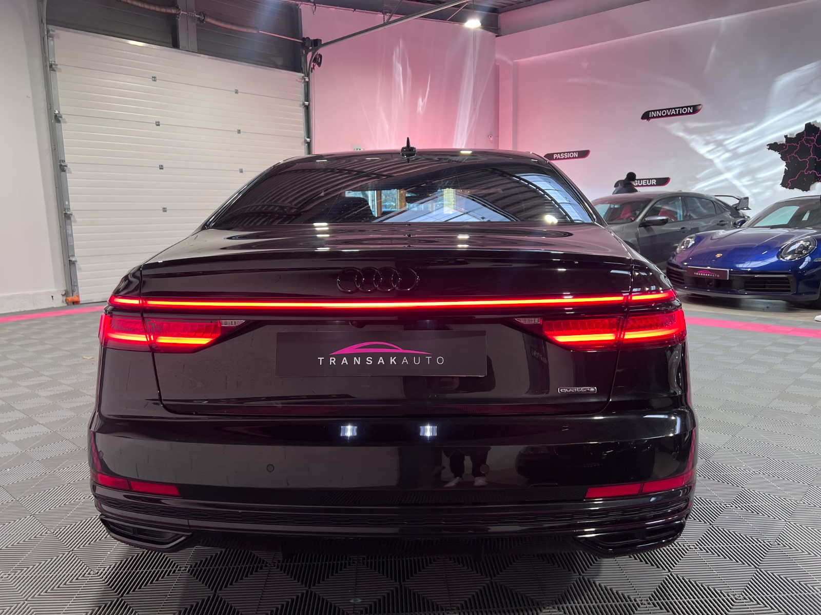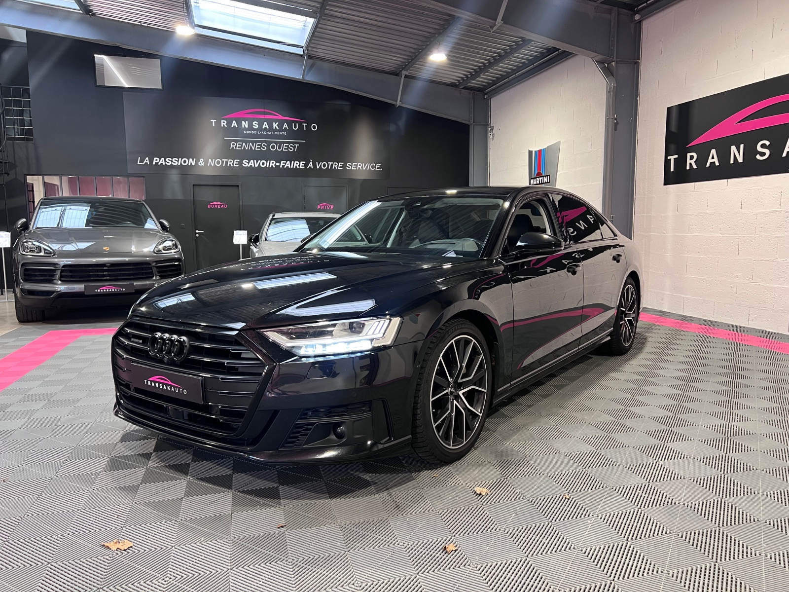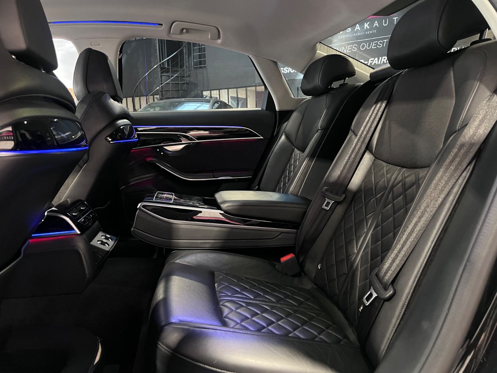 AUDI A8 A8 50 TDI 286 Tiptronic 8 Quattro Avus// 4 Roues directrices ACC Accoudoir arrière Accoudoir avant Affichage tête haute Aide au démarrage en pente Aide parking avec caméra de recul Airbag conducteur Airbag latéral conducteur et passager Airbag passager Airbags latéraux arrière Airbags rideaux avant Android Auto Apple CarPlay Appuie-tête avant éléctriques Caméra 360° Capteur de pluie Charge utile augmentée Climatisation automatique bizone Démarrage sans clé Détecteur actif d'angle mort Détecteur pluie Ecran tactile Ecrous de roue antivol Factures d'entretien Fermeture électrique Fixation pour siège enfant GPS Hayon électrique Installation d'alarme Installation téléphone mains libres Keyless-go Levier de vitesses en cuir Lumière d'ambiance intérieur à LED Ouverture sans clef Pack LED interieur Prise 12V Préparation attelage de remorque Préparation du système de géolocalisation véhicule Radar de stationnement arrière Radar de stationnement avant Roue de secours standard Régulateur de vitesse adaptatif Rétroviseur extérieur électrochrome Rétroviseurs extérieurs dégivrants Rétroviseurs extérieurs rabattable électriquement Rétroviseurs extérieurs électriques Select Drive Siège conducteur réglable éléctriquement Siège passager réglable éléctriquement Sièges arrière à réglage lombaire électrique Sièges arrières électriques à mémoire Sièges avant chauffants Sièges à mémoire Soundsystem Système audio à commande vocale Système de freinage d'urgence urbain Système de navigation Verrouillage centralisé télécommandé Volant en cuir Volant réglable électriquement