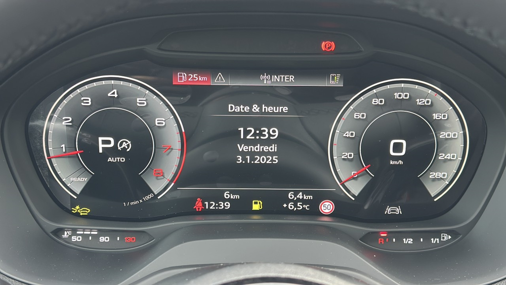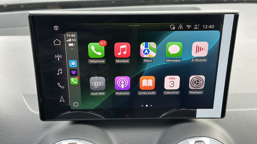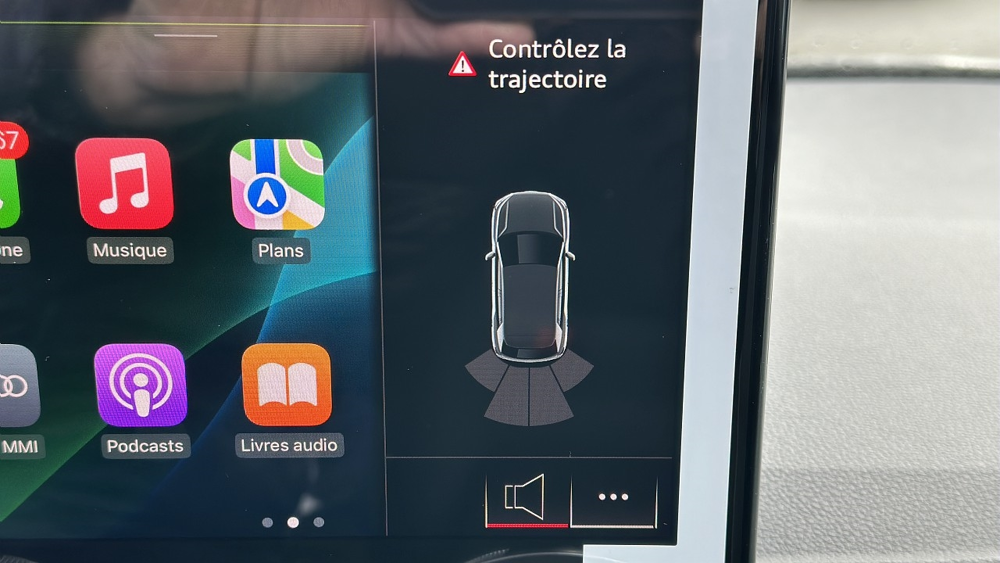 Noir Mythic métallisé,Audi Smartphone Interface,ABS,Aide au démarrage en côte,Airbag conducteur,Airbag passager,Airbag passager déconnectable,Airbags latéraux avant,Antidémarrage électronique,Antipatinage,Appel d'Urgence Localisé,Arrêt et redémarrage auto. du moteur,Bacs de portes arrière,Bacs de portes avant,Banquette 60/40,Banquette AR rabattable,Blocage électronique du différentiel,Boite à gants fermée,Borne Wi-Fi,Boucliers AV et AR couleur caisse,Capteur de luminosité,Capteur de pluie,Ceintures avant ajustables en hauteur,Clim automatique,Commande du comportement dynamique,Commandes vocales,Compte tours,Contrôle élect. de la pression des pneus,Disque dur multimédia,EBD,Eclairage statique d'intersection,Ecran multifonction couleur,ESP,Essuie-glace arrière,Feux de jour à LED,Feux de position à LED,Filtre à Pollen,Fixation Isofix siège passager avant,Fixations Isofix aux places arrières,Follow me home,Fonction MP3,Freinage automatique d'urgence,Interface Media,Jantes Alu,Kit mains-libres Bluetooth,Lampe de coffre,Lampes de lecture à l'arrière,Limiteur de vitesse