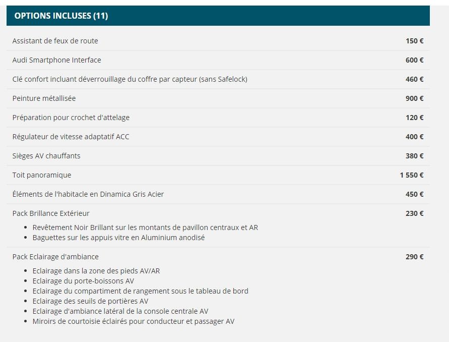 Informations clés : voiture AUDI Berline