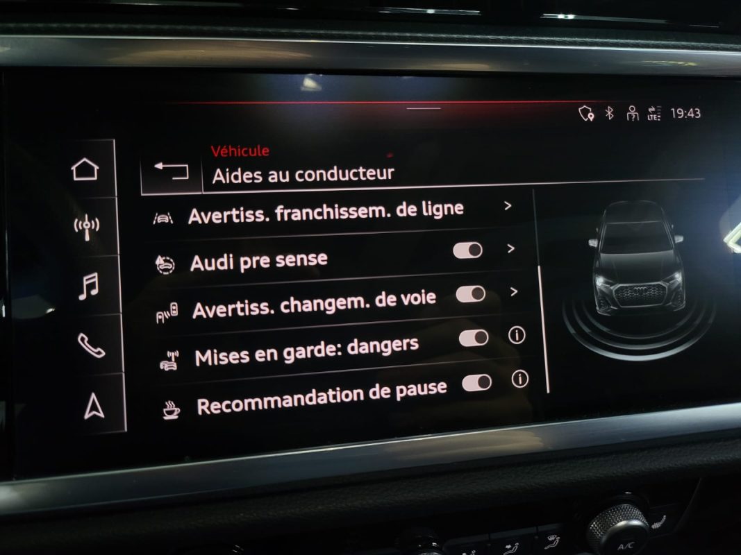 Accoudoir central, , Banquette 1/3 2/3, Banquette rabattable, Bluetooth, Bouton démarrage, Climatisation automatique, Fermeture électrique, Fermeture électrique automatique, Gonflage lombaires, GPS, Rétroviseurs dégivrants, Rétroviseurs électriques, Rétroviseurs rabattables électriquement, Sièges chauffants, Sièges électriques, Système de navigation, Vitres électriques, Volant multifonction, Volant réglable, Assistance au freinage d'urgence (AFU), Aide au démarrage en côte, Airbags frontaux, Airbags latéraux, Freinage automatique d'urgence (AEB), Avertisseur de franchissement de ligne, Carte main libre, , Détection panneaux signalisation, Antipatinage (ASR), Feux de freinage d'urgence, Fixations ISOFIX, Full LED avant, Limiteur de vitesse, Radar anti-collision, Radars de stationnement avant, Régulateur de vitesse, Régulateur de vitesse adaptatif, Android connect, Apple carplay, Caméra de recul, Chargeur à induction, Compteur digital, Drive select, Essuie-glaces automatiques, Pack S-line, Système ecomode, Système sans clé, Température extérieure, Livraison à domicile, Livraison possible dans toute la France, Service Carte Grise, Véhicule visible sur RDV